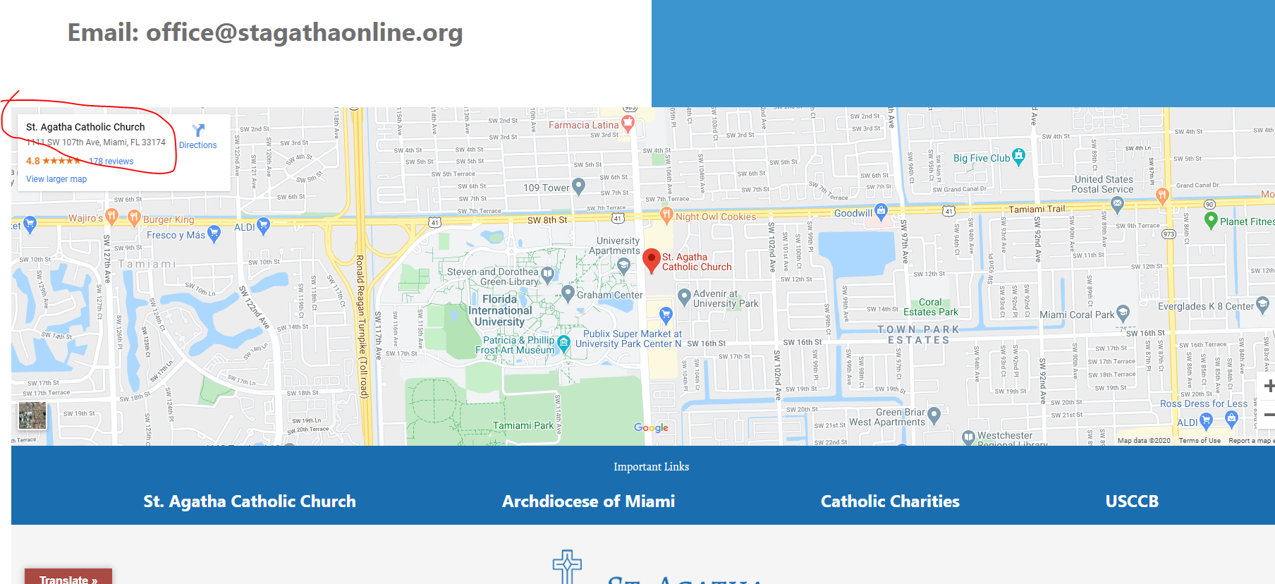 ✔ ASAP - Lilly called, school pulling in wrong Google map, it's showing the church at 1111, not the School at 1125 SW 107th