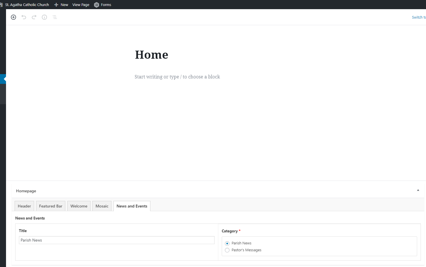 ✔ Parish News Section is pulling most recent posts, not based on category defined.