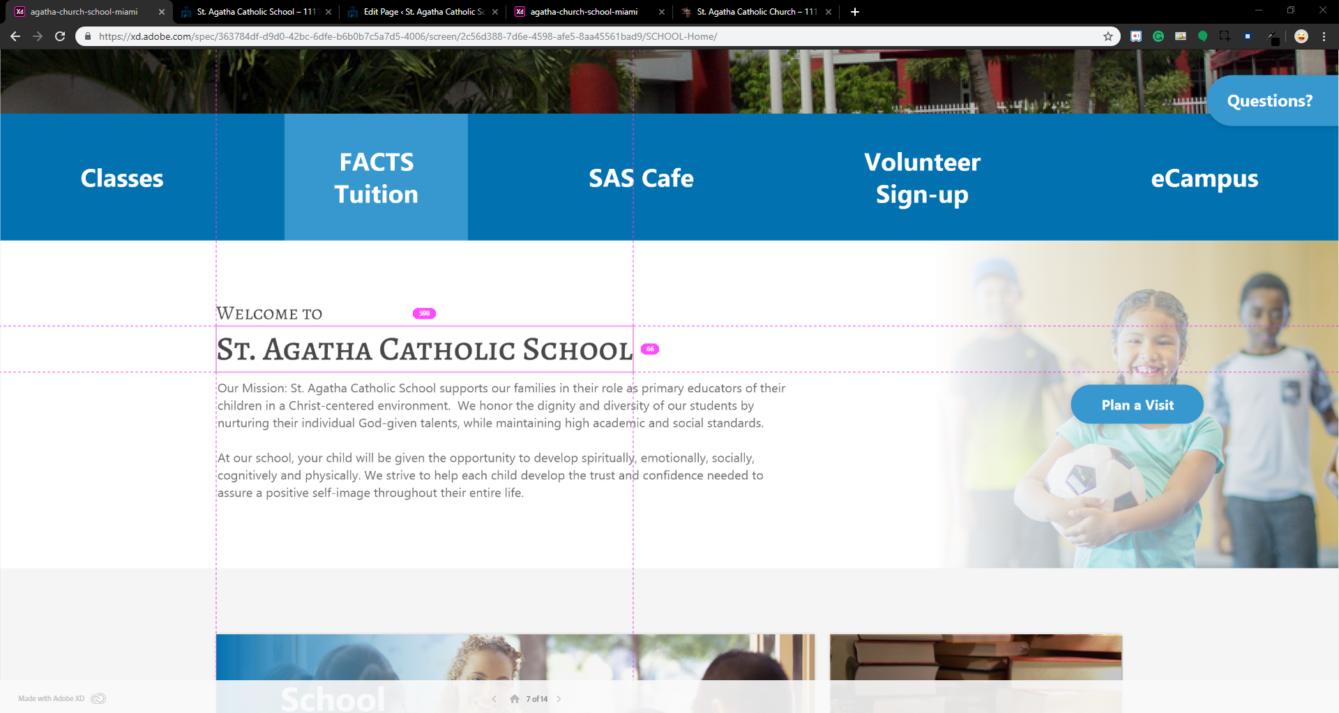 - The whole element (title, text, picture/gradient, button) welcome div, needs to be taller too. 383px current, 454 in church proof. 558 in school proof. Either way too small. Talk to