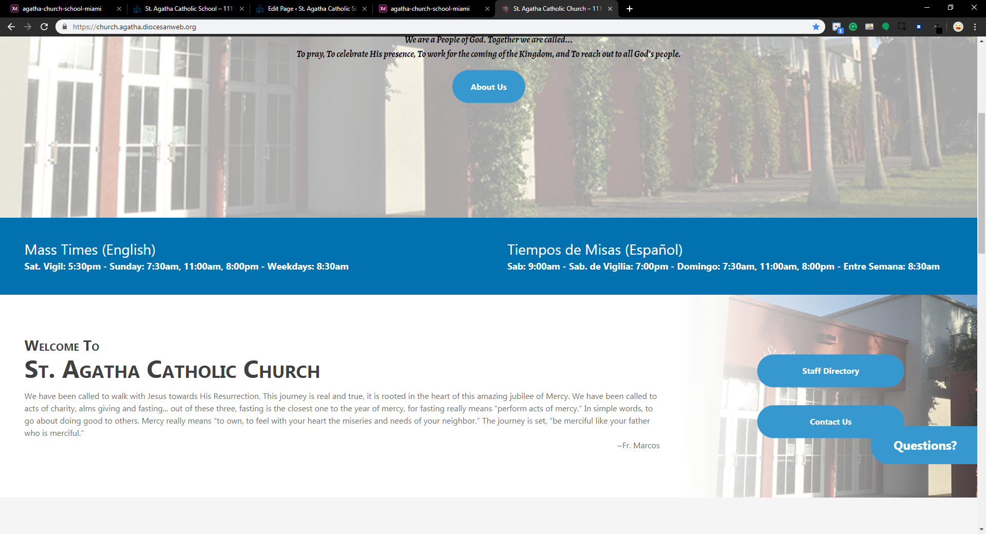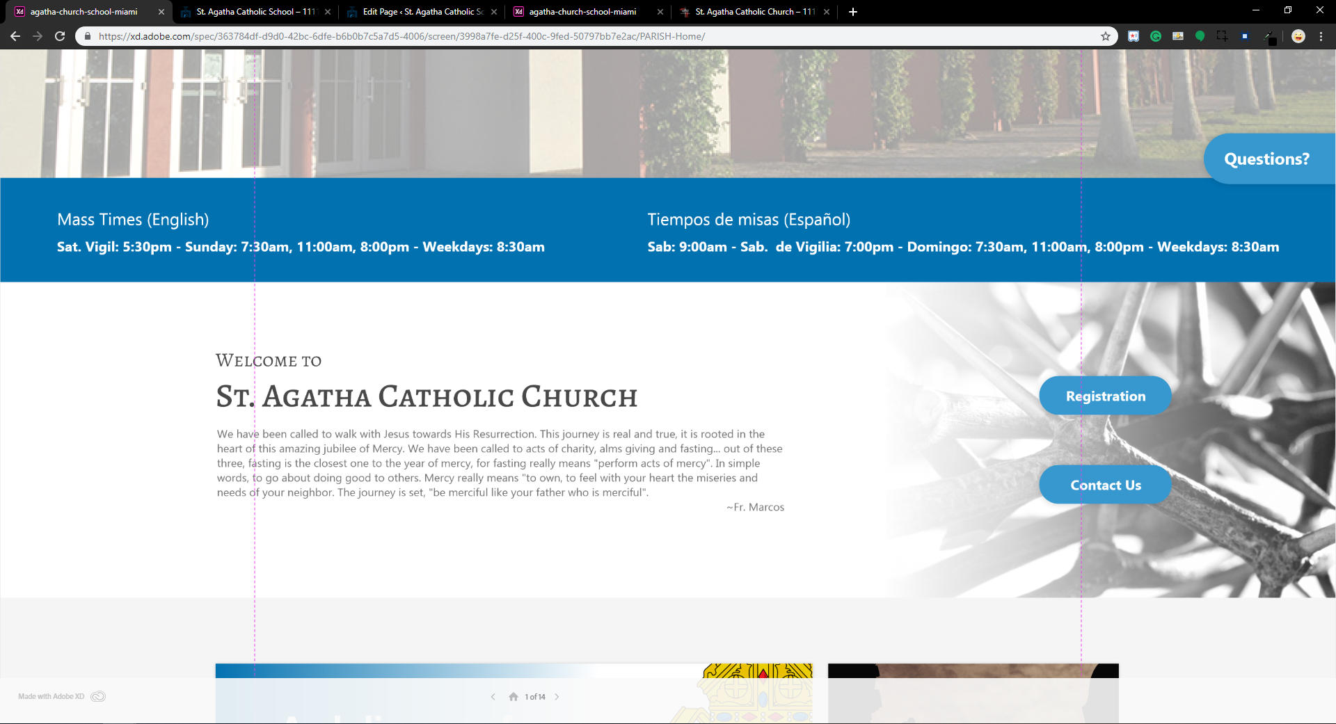 - The "Welcome to St. Agatha..." Banner needs to be more contained, squish it both ways.