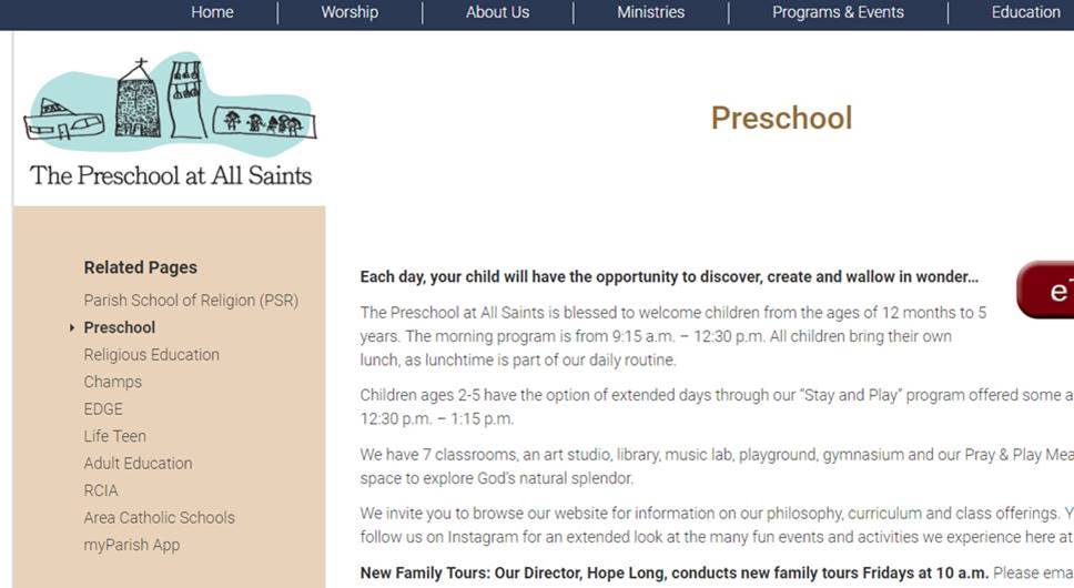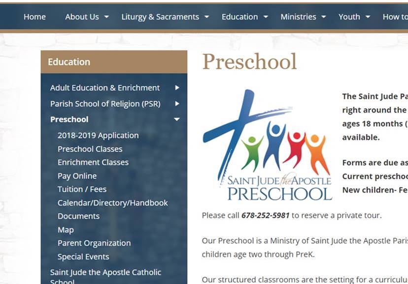 Here’s something I’d asked about before and found on another Diocesan site. I think I’ve done what you described. Can you tell me what St. Jude did to make it work? They have a Diocesan website too. Their Preschool page is also not the top level parent, but under Education. https://judeatl.com/education/preschool/ This is how I would like our Preschool page to have it’s subpages listed. I don’t need to have any related pages listed on any page. On our last website, that had a database attached that I could manipulate.