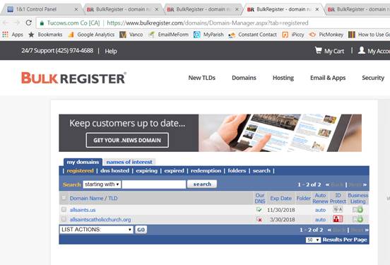 Domains allsaintsdunwoody.org and .com are through 1 & 1.
