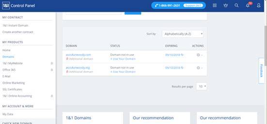 The domains are listed in my 1 & 1 account now.