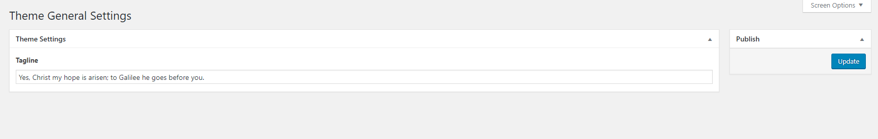 2. For the "tagline" area under the social media buttons, Diocesan Publications was able to make that a widgeted area for us so we could change it periodically. For the parish, we would like to adjust it throughout the liturgical year. Could you change the tagline for now to the following and let me know if it is possible to make it a widget? The new tagline for Easter is included below: