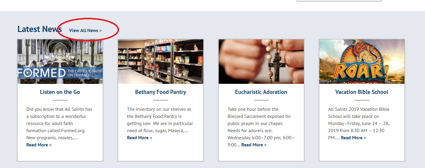 * Formed.org link on the Home (https://allsaintsva.diocesanweb.org/) page