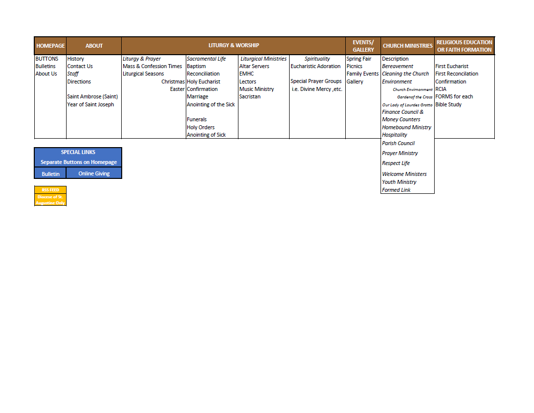 Thank you for sending that over. I took a look at the layout and added a few things to the proposed sitemap, both to fit the design of the website and to incorporate those pages that Father Zehler wanted.