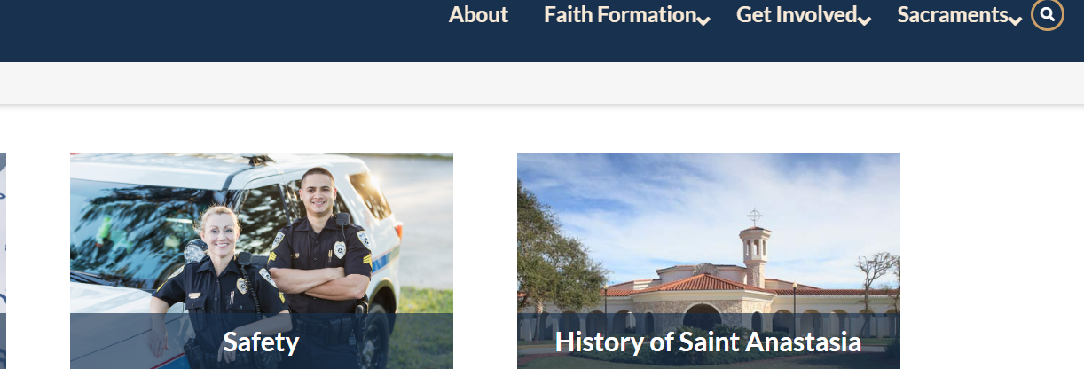 ✔ Menu- Arrow next to Faith Formation, Get Involved, and Sacraments