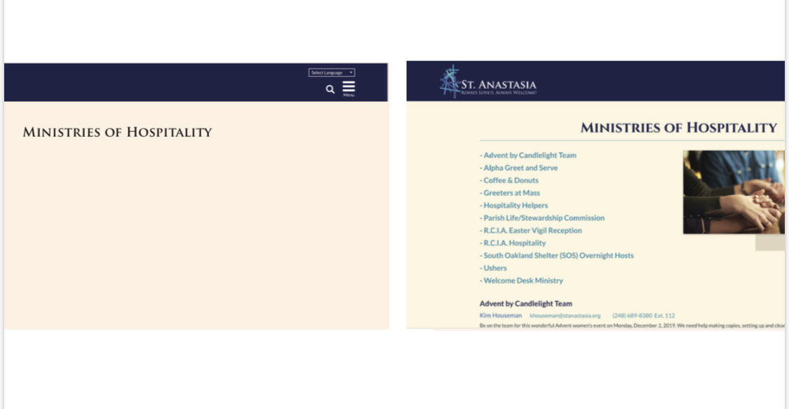 I have finished making the edits we spoke about today, as well as creating the new ministries page.