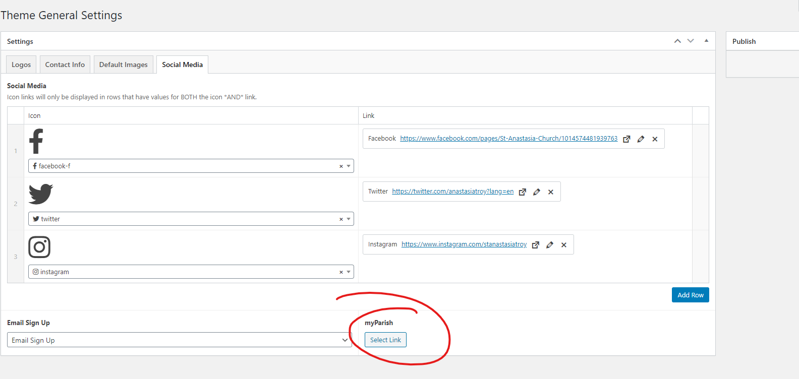 ✔ Theme Settings - myParish App Logo should show if there is a link added in the Theme Settings