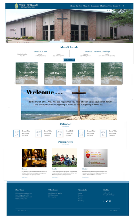 For the remaining information that did not fit in one of the 6 categories, I have added About Our Parish, 2018-19 Fiscal Year, Photo Gallery, and Sitemap as the 4 footer links. That way, the financial and parish information is in the footer, available but not a primary focus.
