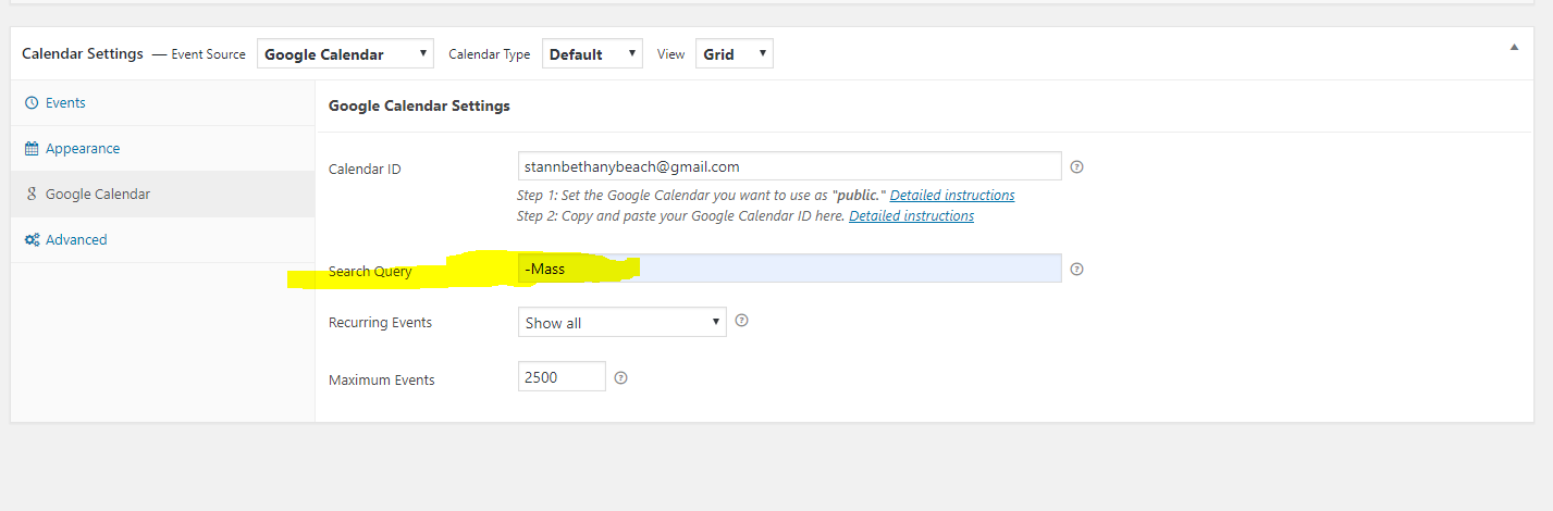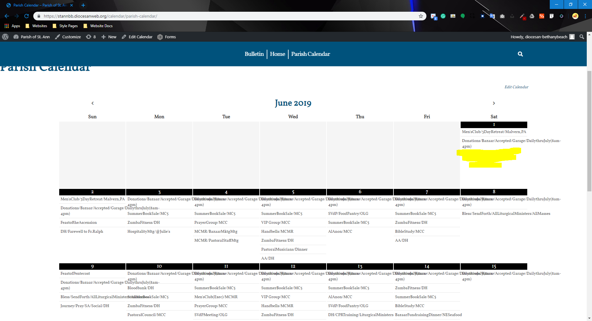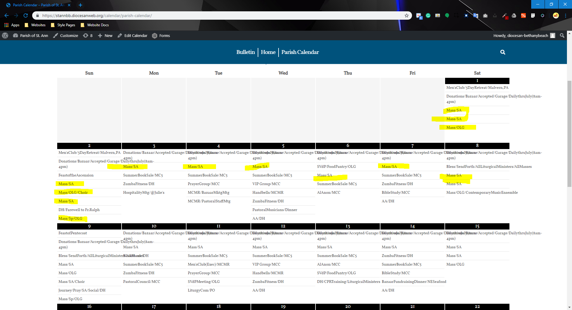 ✔ Calendar - Don't want Mass Times showing up on Homepage although they are in the Calendar. Need to categorize it.