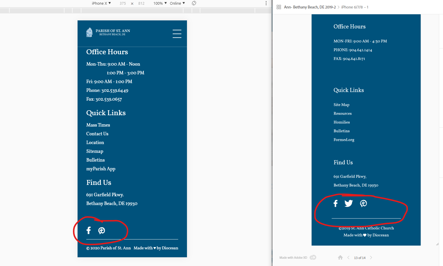 ✔ Footer - More spacing between social media and horizontal line