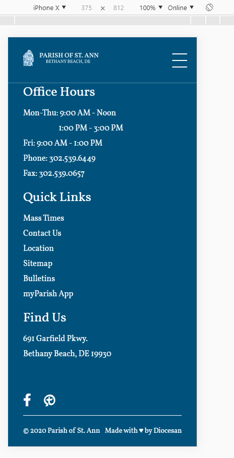 ✔ Footer - Site Info Stack vertically and text align center