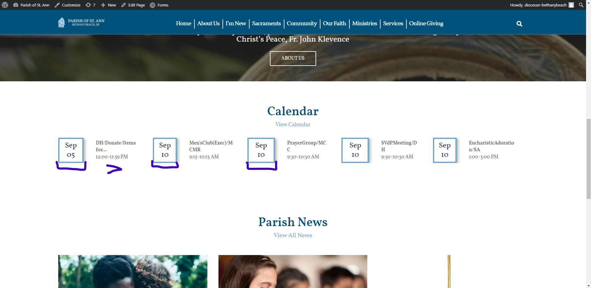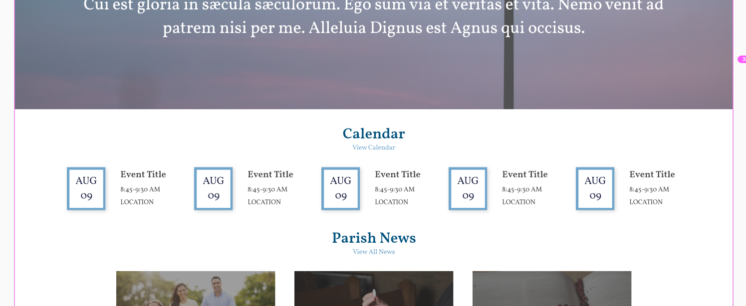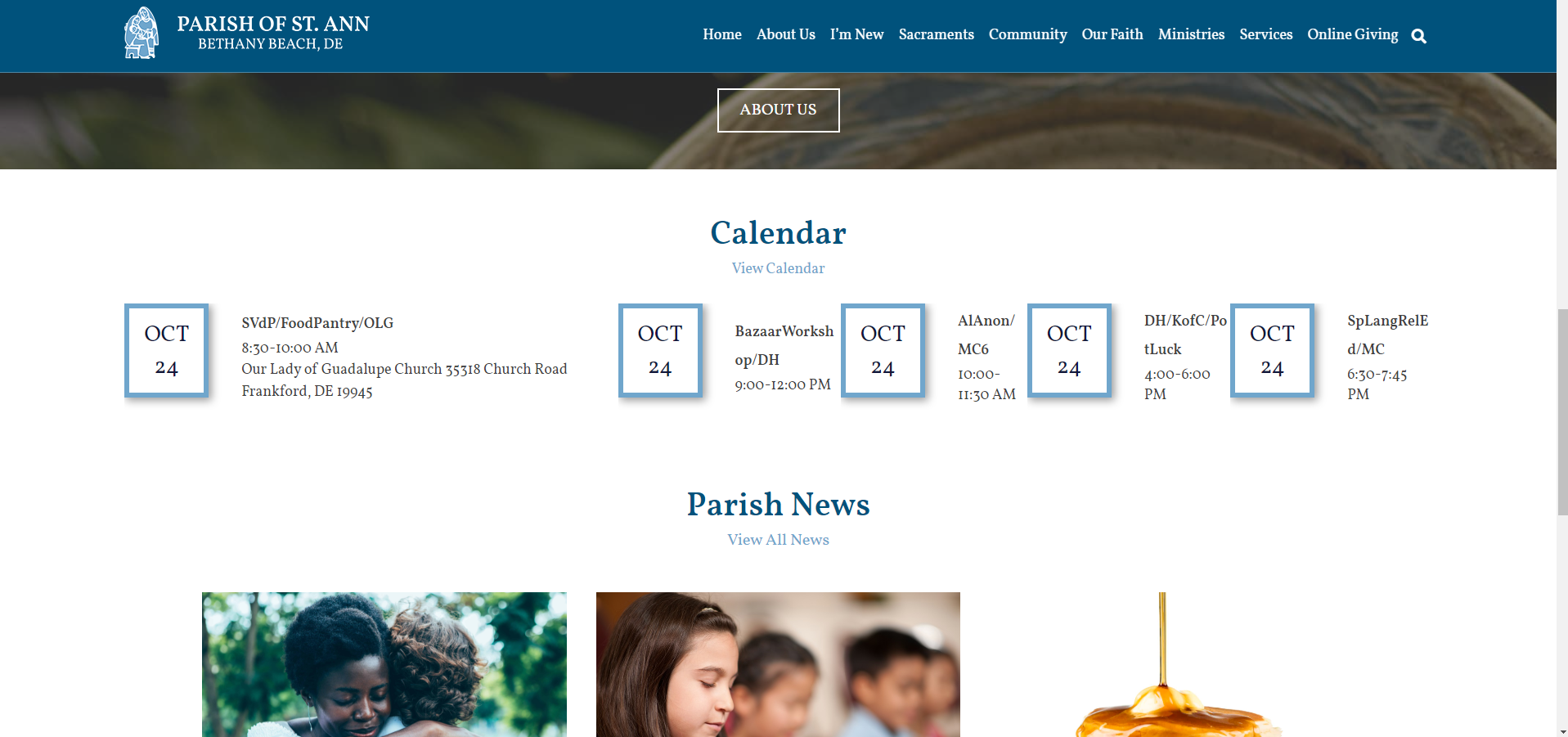 - Remove a bunch of the spacing between the Misson Section and Calendar section as well as between the Calendar section and the Parish News Section.