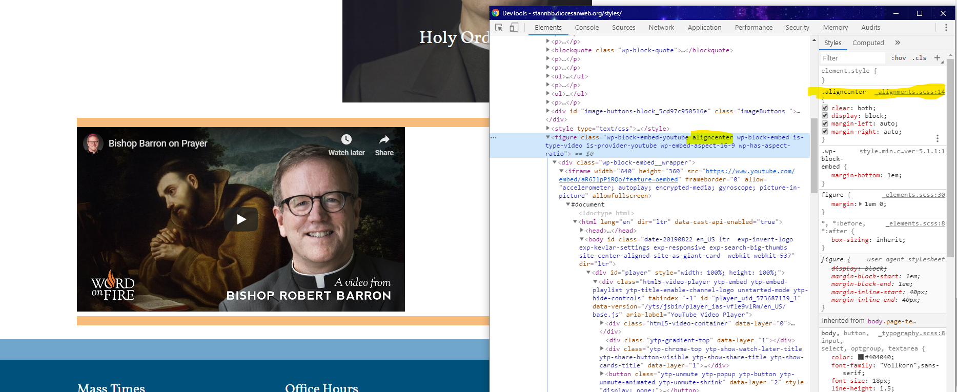✔ Page - Youtube Videos, .aligncenter for embeds.