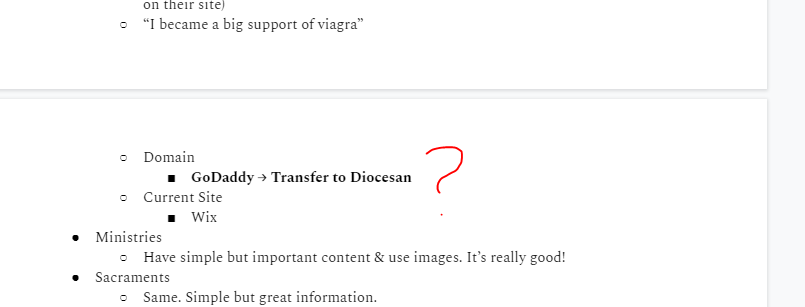 Originally they were thinking about moving the domain, but the diocese is in charge of all domains.