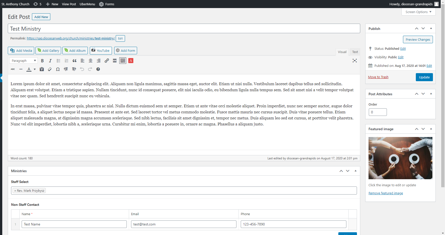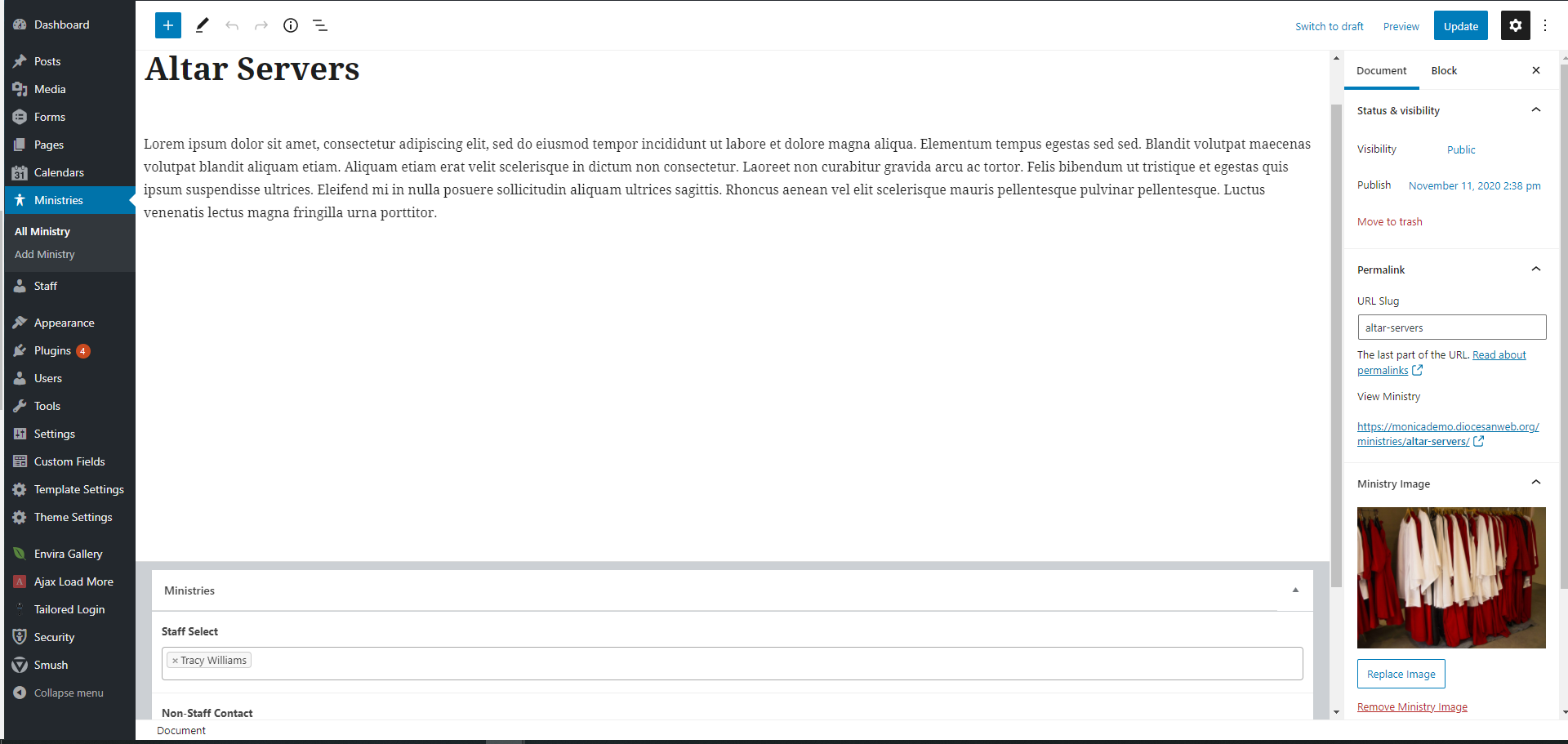 ✔ !!!!!!! Parish - Ministries CPT - Convert to the Gutenberg updated version