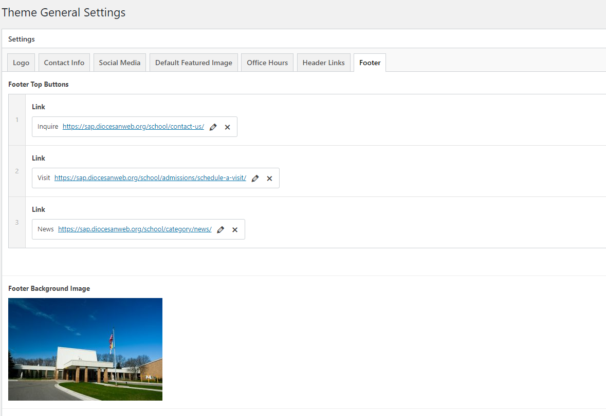 ✔ Theme Settings - Need option in footer tab to change the footer image like the school has