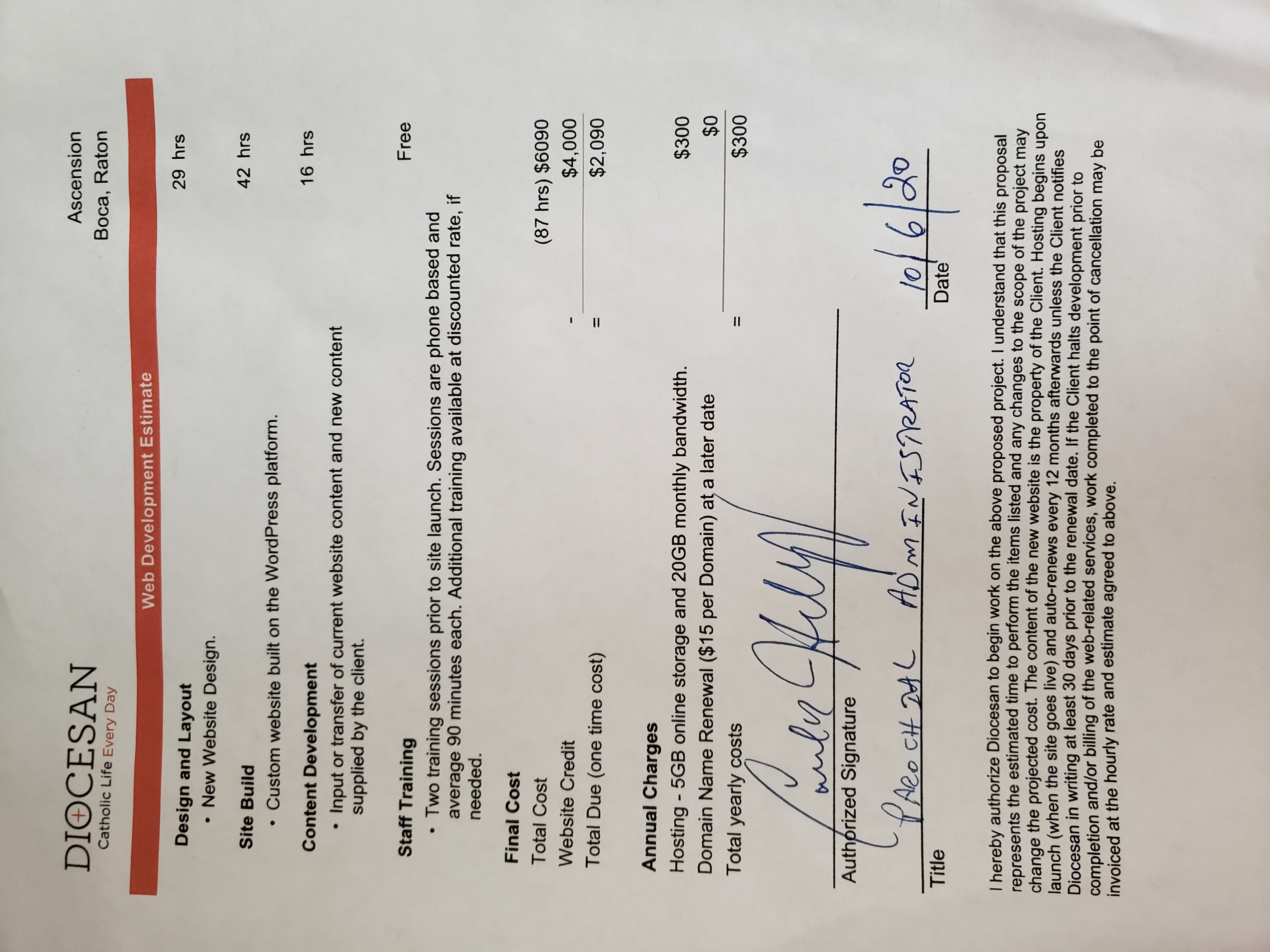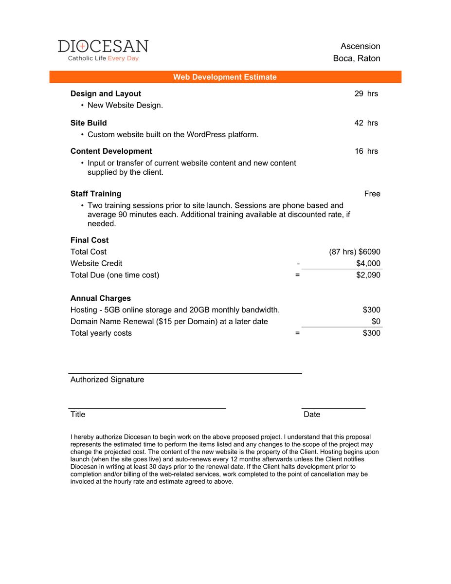Thank you for the signed proposal. We are very excited to work with you on a new website for Ascension.