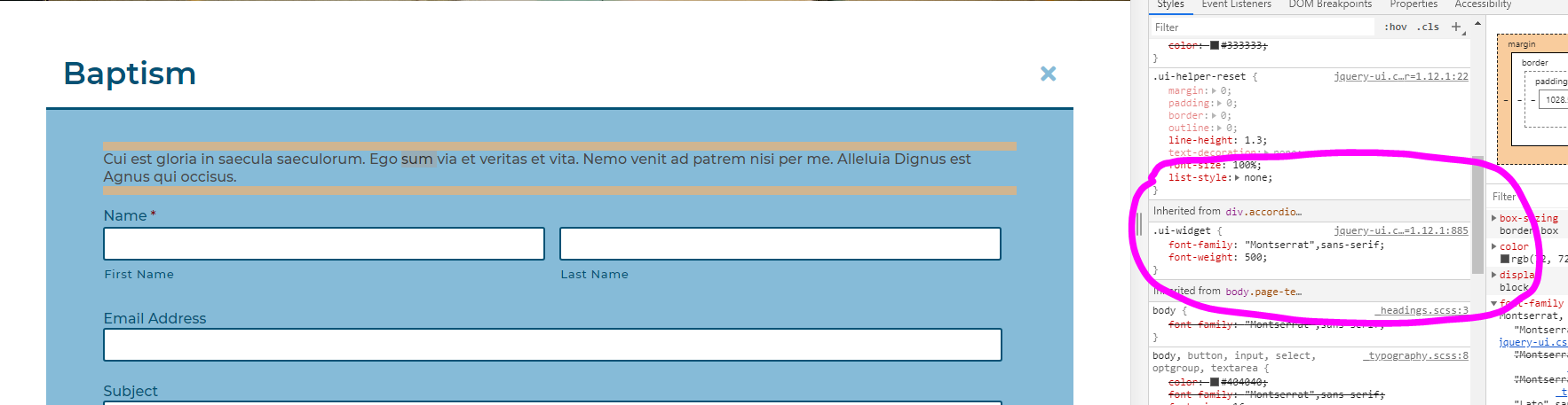 I've set the font-family for all .ui-widget elements to $font__main and the font-weight to 500.