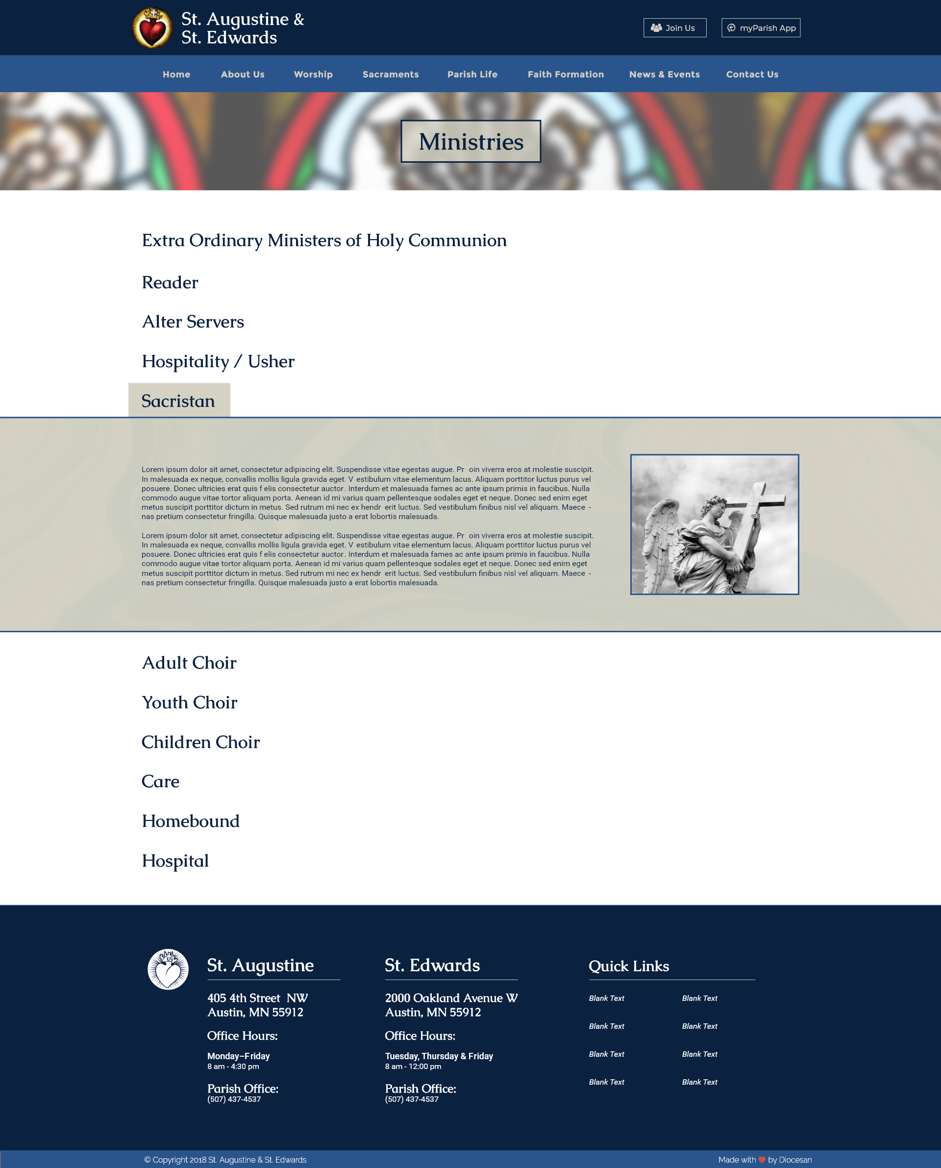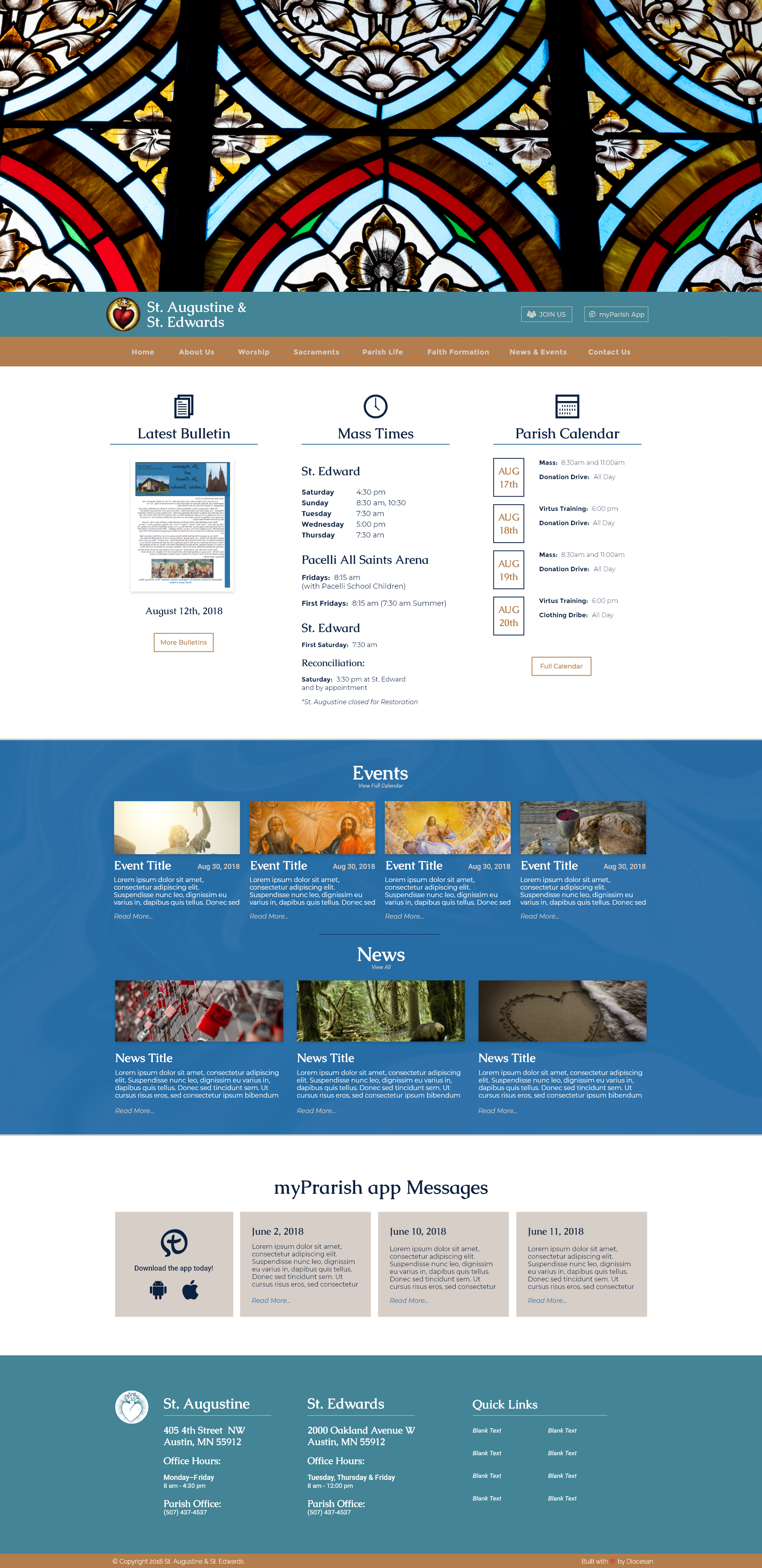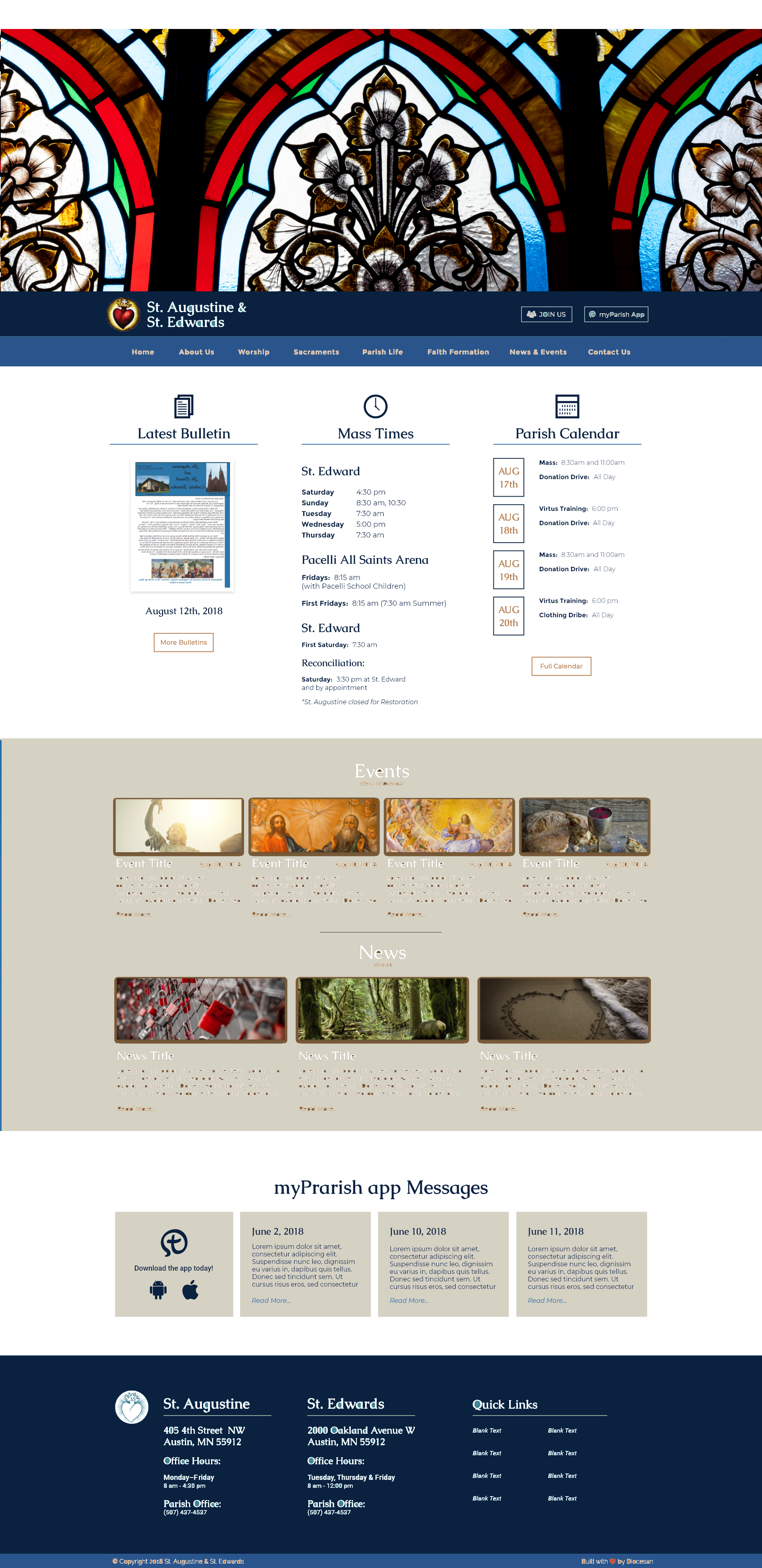 Fr wants the navy bar in the header to be taller/a thicker navy space where the text of the church names and logo are, and the text of the church names and logo size to be increased slightly, to give that area more importance to draw the eye. He also thought the heading text size of news, events, etc. could be increased, but we also understand there could be a consistency issue with font size/etc. if we mess around with that here and there, so whatever your best judgement is based on your experience.