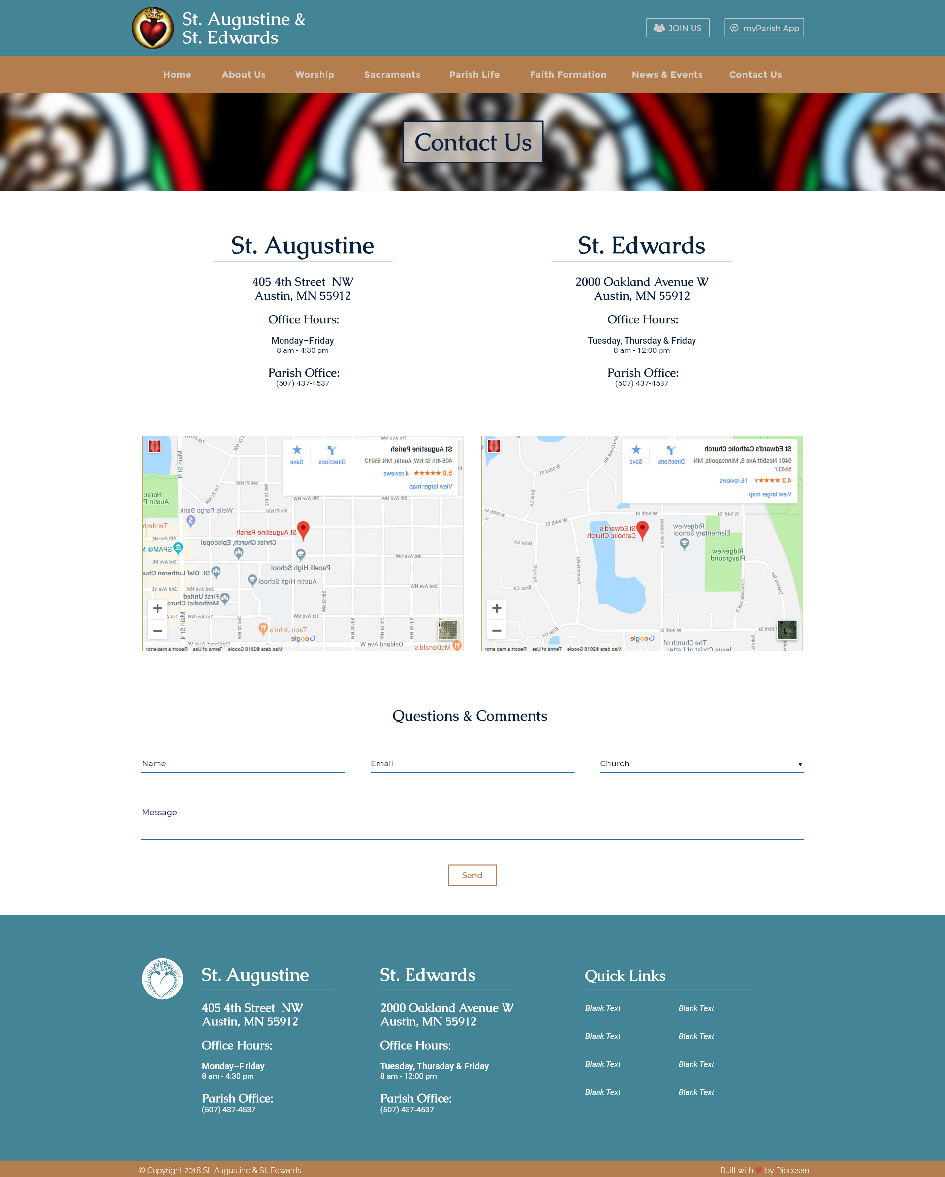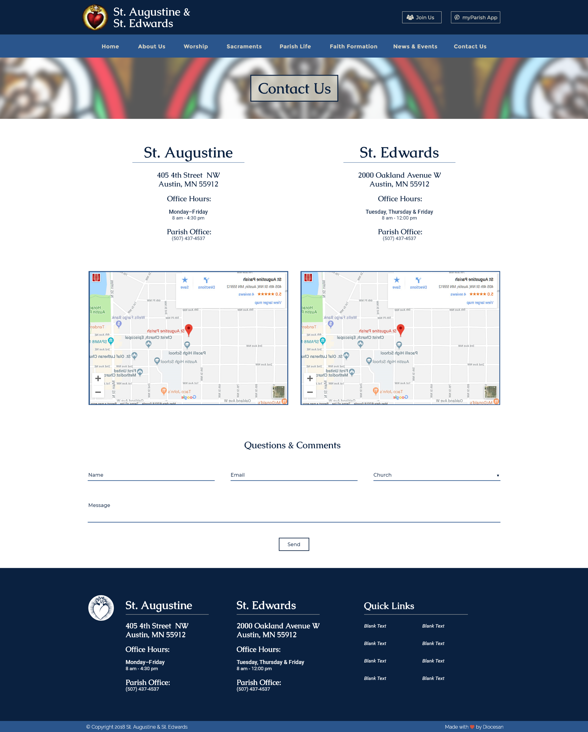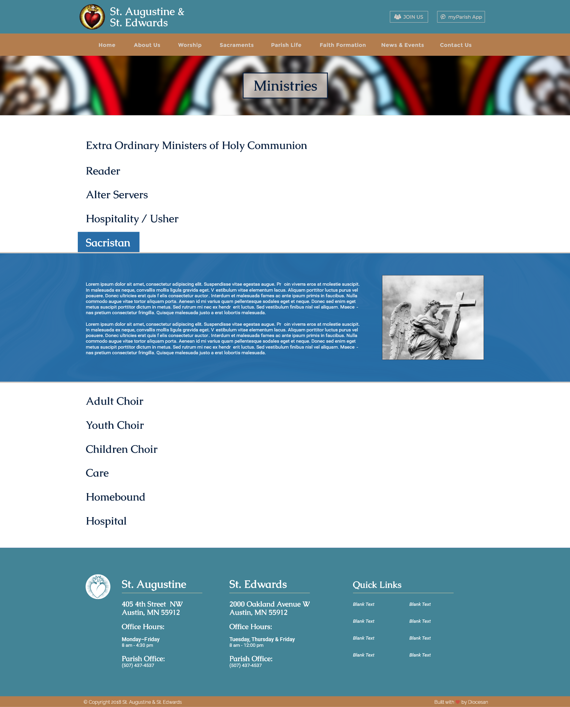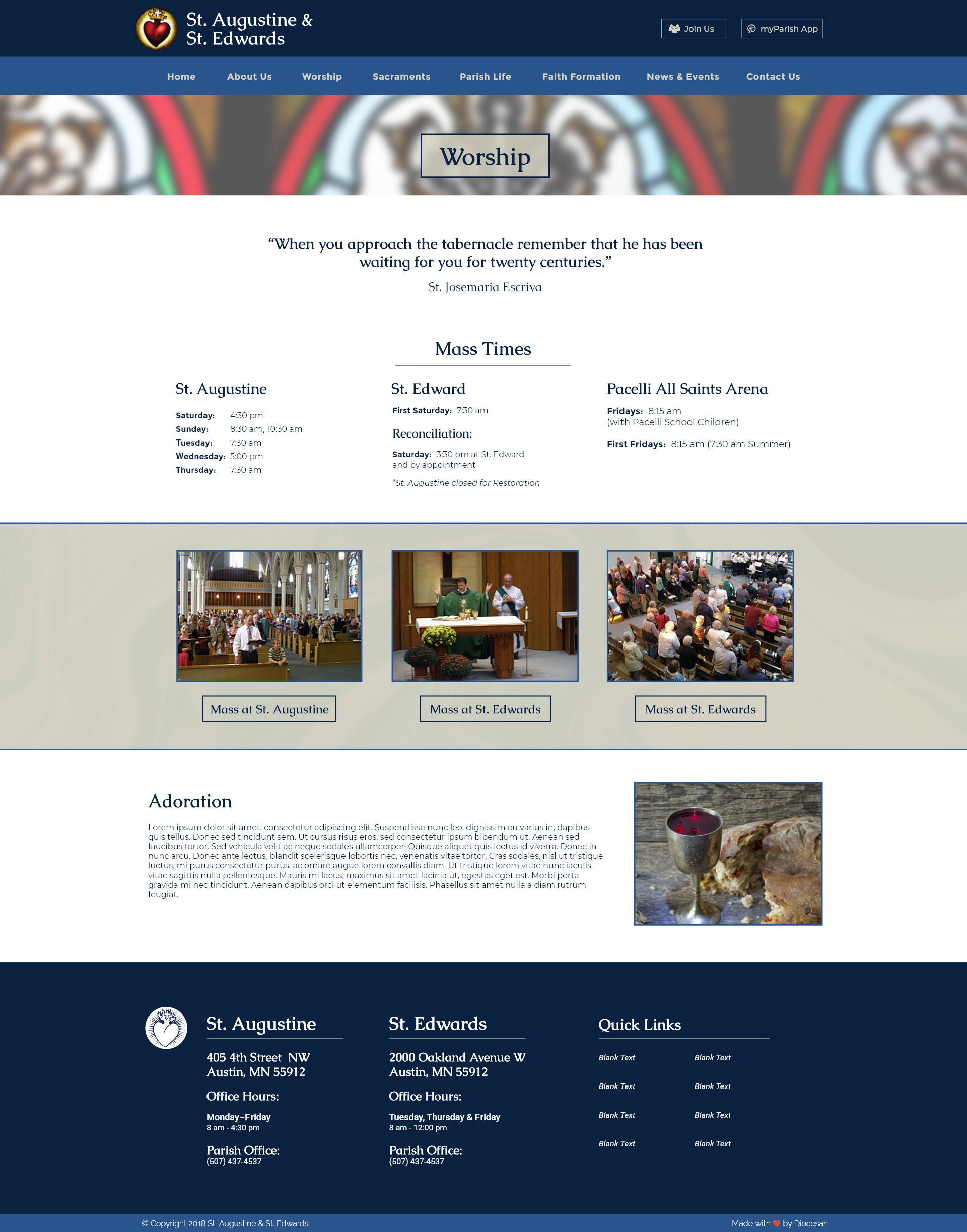 Fr wants the navy bar in the header to be taller/a thicker navy space where the text of the church names and logo are, and the text of the church names and logo size to be increased slightly, to give that area more importance to draw the eye. He also thought the heading text size of news, events, etc. could be increased, but we also understand there could be a consistency issue with font size/etc. if we mess around with that here and there, so whatever your best judgement is based on your experience.
