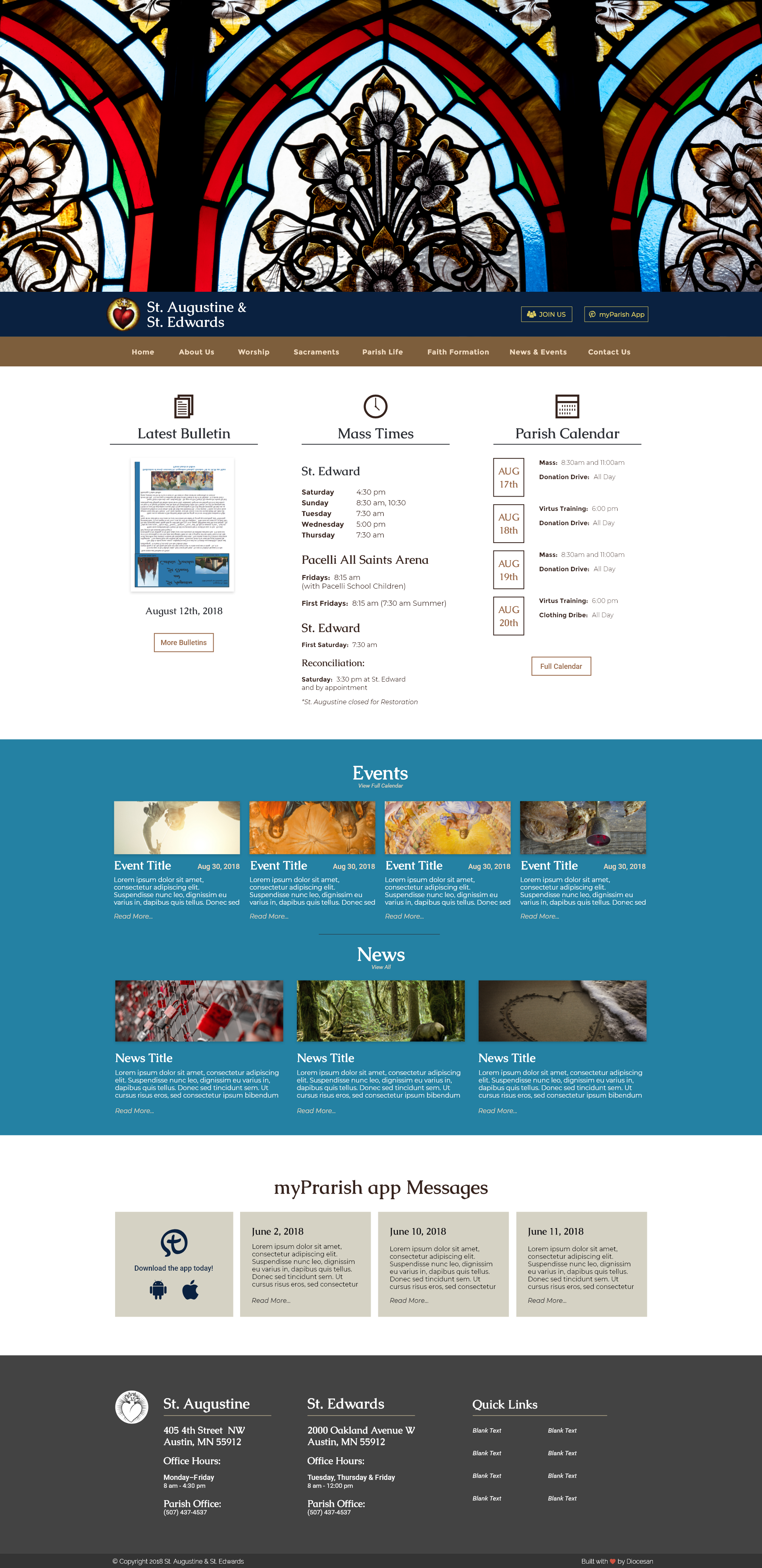 Good afternoon, my name is Blake Stapleton and I will be helping you finish up your new website project. Now that the dust has settled and the Christmas Season is over, I wanted to reach out to you to introduce myself and pick up where Sam left off. As Sam had mentioned he is no longer with Diocesan. However, looking at the project status I see he sent you a bunch of mockups for review and we were getting close to design approval, or in the process of it.