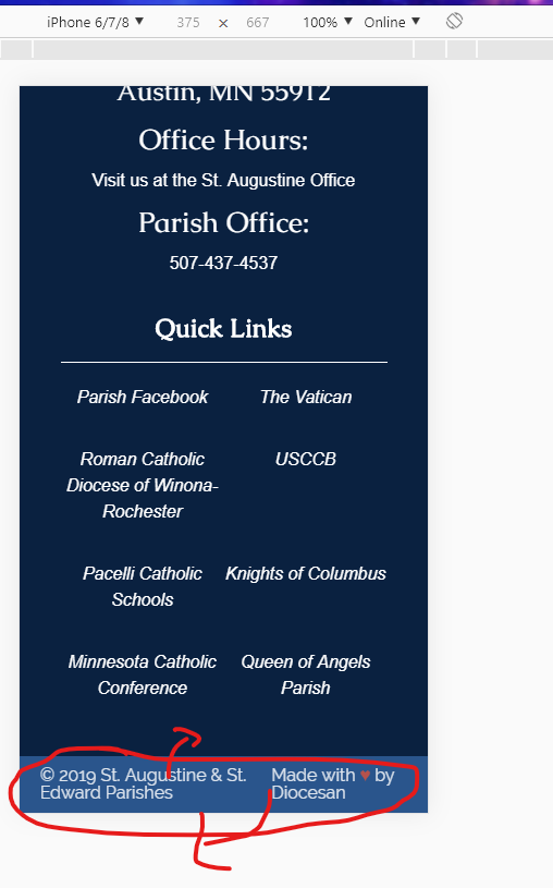 The Copyright should be first then the Diocesan signature thing, but contained within the blue thing. You can shrink the font too. Thanks.