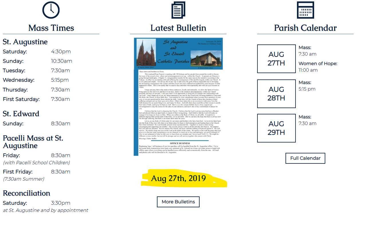✔ Homepage - Change the Bulletin date to the corresponding date from the most recent bulletin, if not possible, then just get rid of the date.