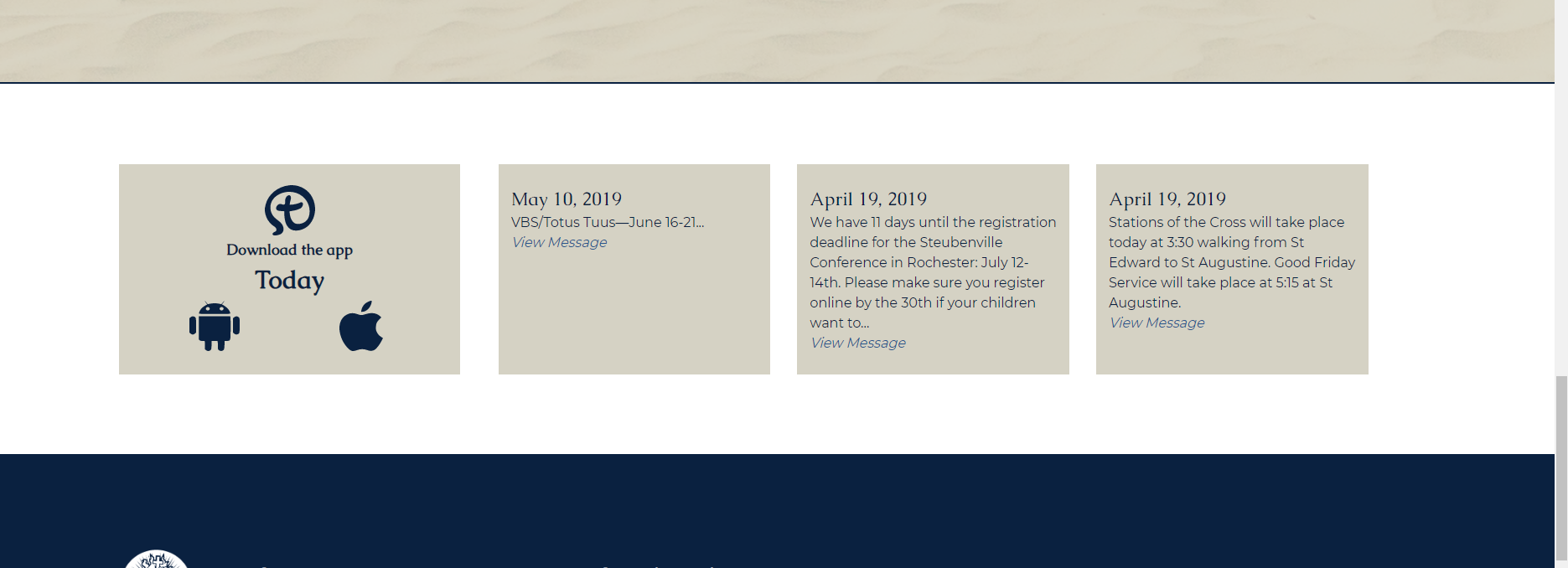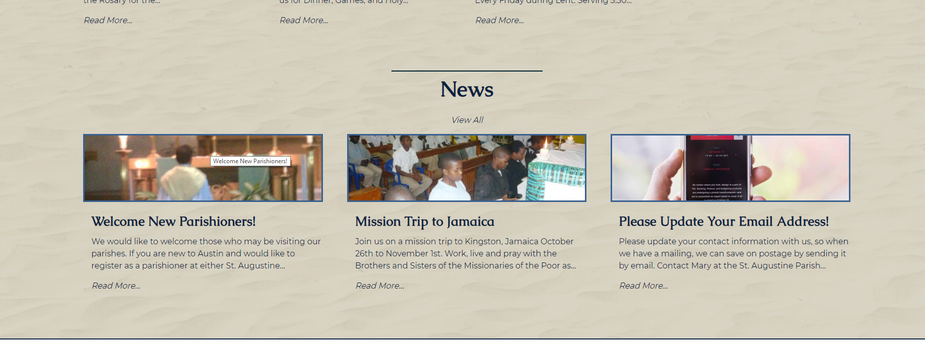 ✔ Homepage - myParish App boxes should have the background image as the sand from the News/Events Section of the homepage.