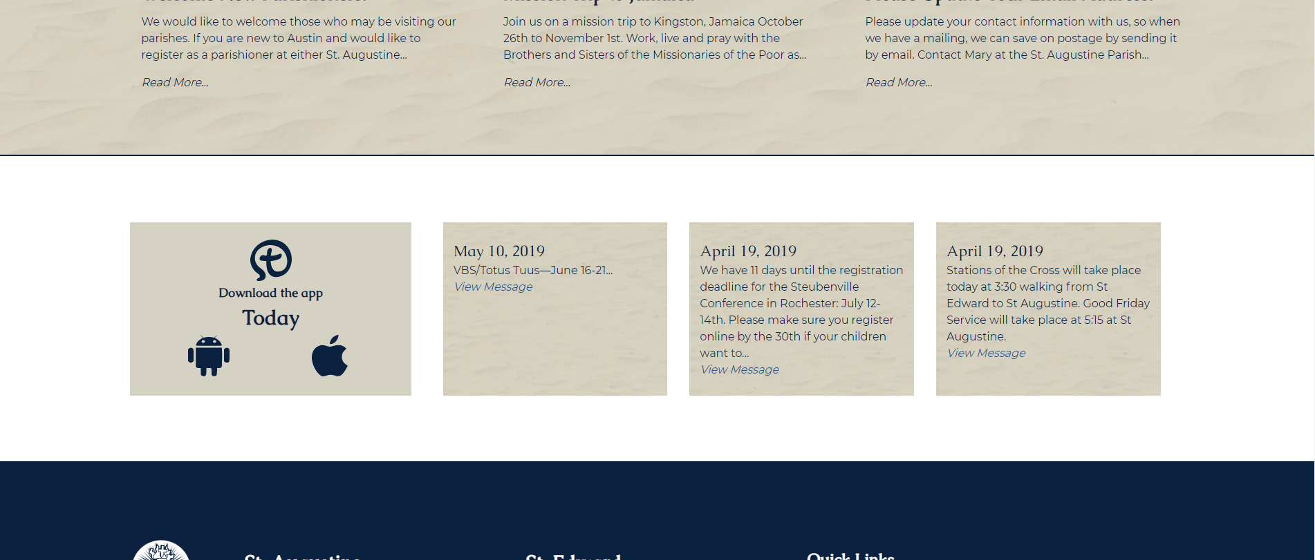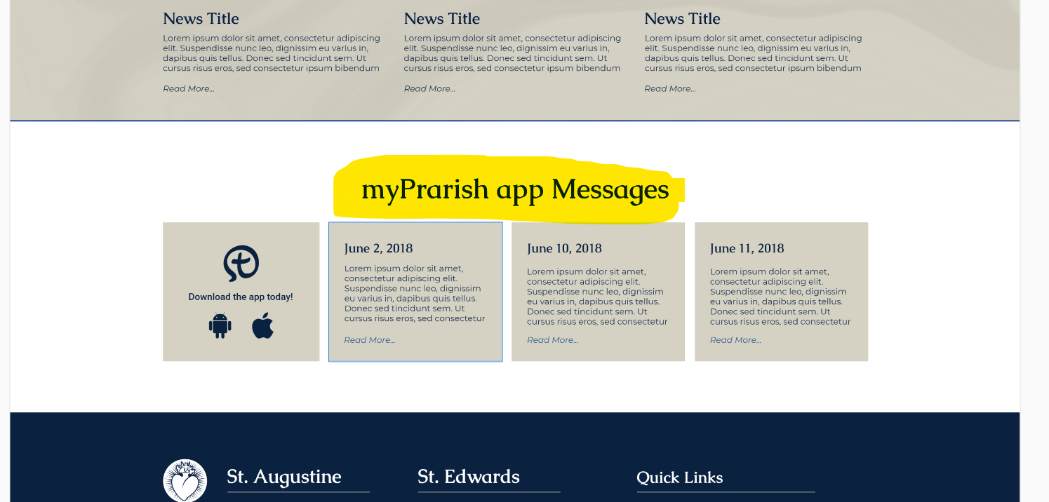 ✔ Homepage - myParish App Messages Title missing