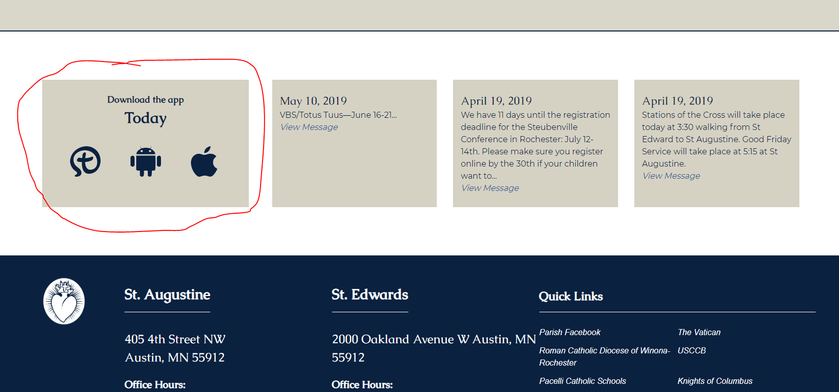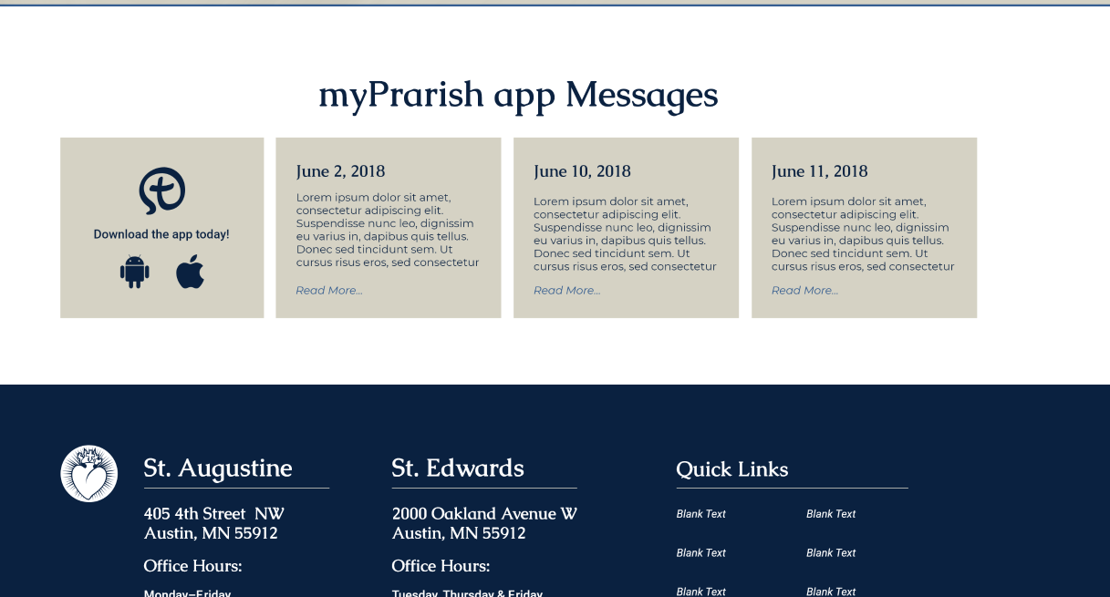 The first box should be the same size as the other boxes. MyParish Logo should go above the text, if possible.