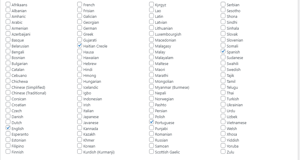 We would like to add the Google translate feature with: English, Spanish, French, Chinese, Pilipino and Korean.