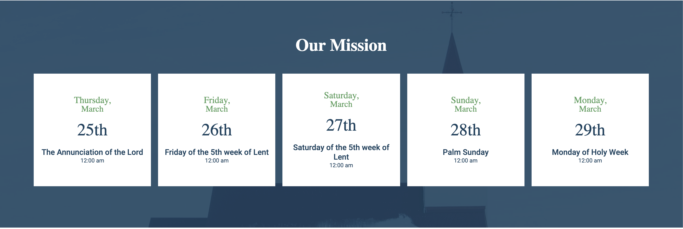 - Mission Statement and Mass Times - The original Hybrid Site had these in the same spot, and you would choose which option you wanted to use. We are able to seperate these out and place them in the location you wanted. (4-6 hours)