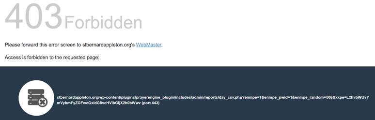 5. When I try to print a report in the prayer requests report (results as csv), this is what I get. I also get this with the results in a printable browser window. I was able to access the reports in the working site before we launched.[cid:image003.jpg@01D78D06.485A5A00]