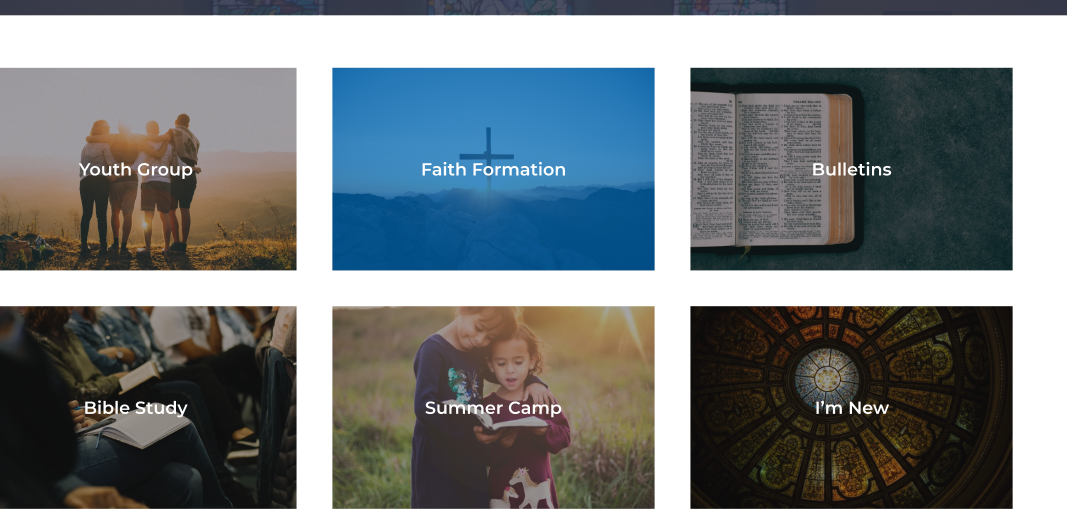 ✔ Homepage - Featured Buttons should have an overlay to make the images darker so the text is more readable