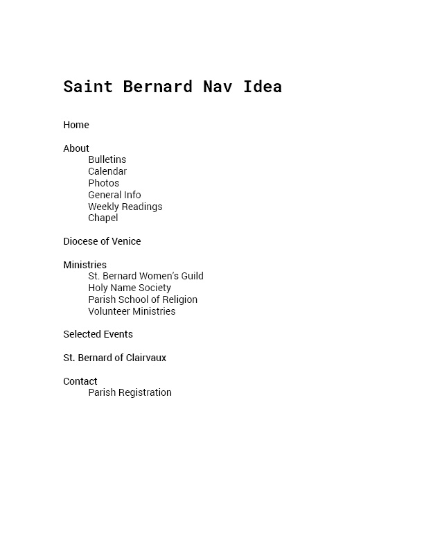 In the proposal, a site showing several examples of other web sites developed by Diocesan was included. After a review, the Pastor and Business Manager have requested that the sample development for "Our Lady of the Hills" would be a good match for what's desired for St Bernard's.