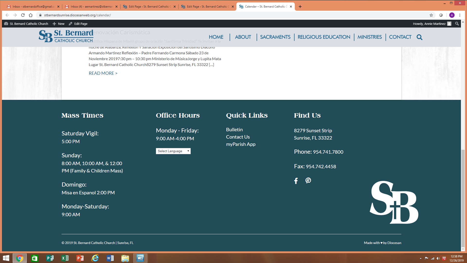 -- Annie Martinez-Matta Facilitator & Office Manager St. Bernard Catholic Church 8279 Sunset Strip Sunrise, FL 33322 Tel. 954-741-7800