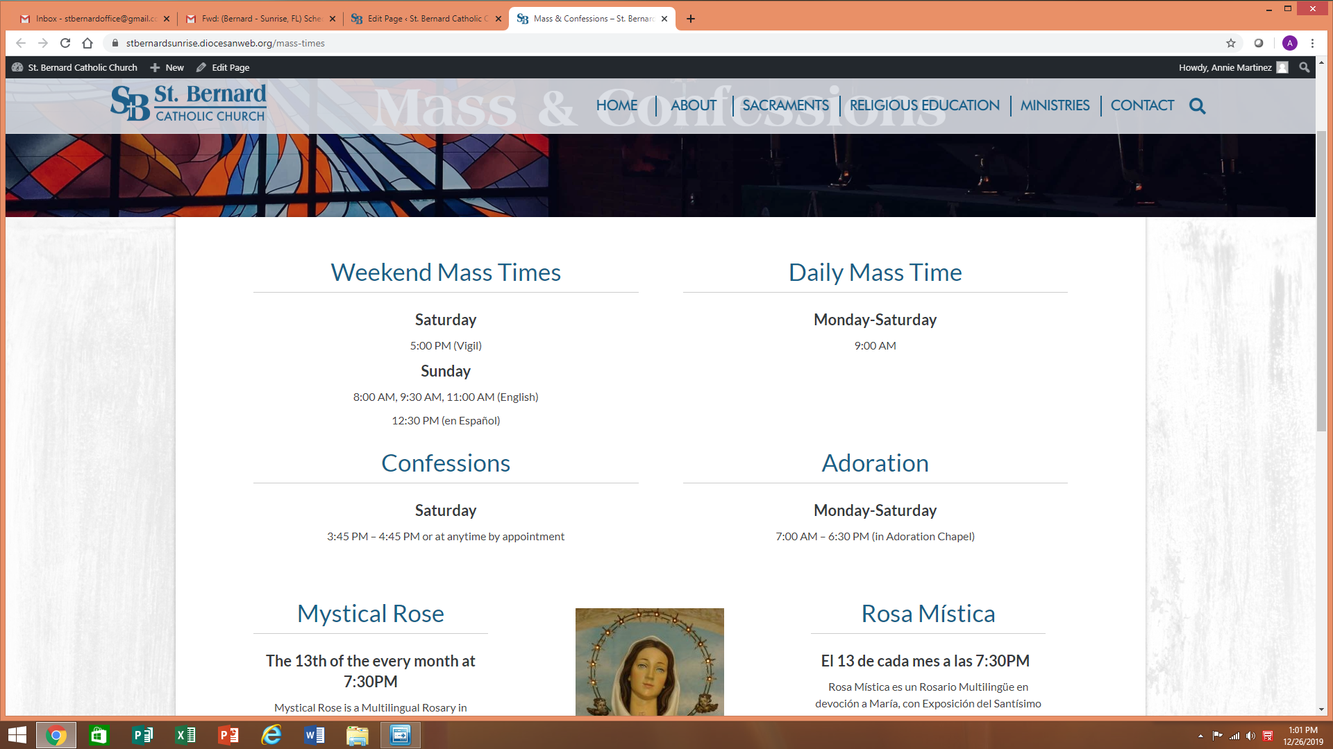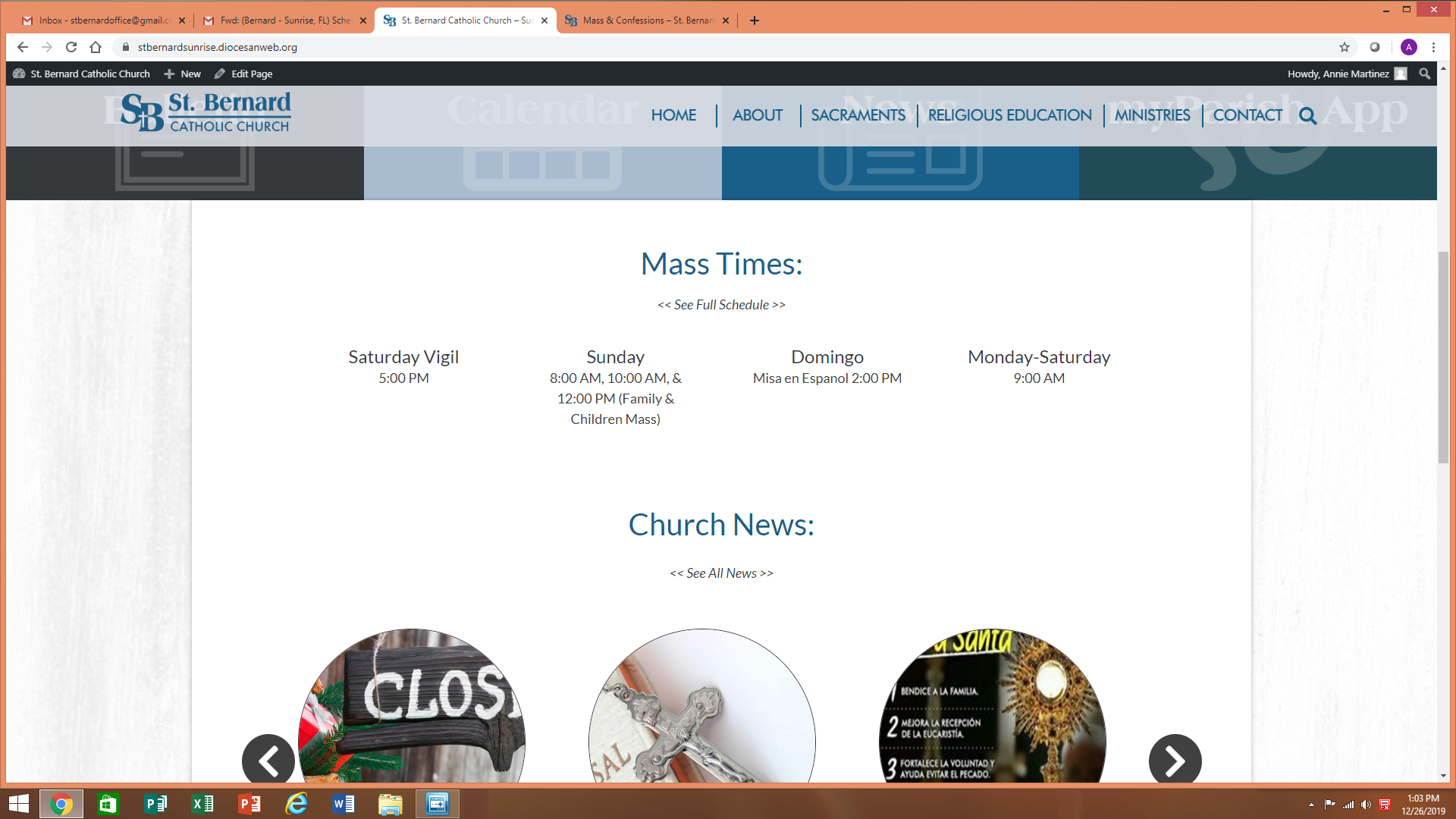 Thank you so much for this information Veronica. I have thought for the last month about just launching & updating as we go. But wasnt sure about it. Now, that you reassure it, I will do that. But before I do, can you please help me update this page? i have tried & dont know how to do it. Thank you so much for updating the events!!!!!! But I want to delete these 3 you see here. You had these only for looks. Also I want to change the Sunday Mass times, which will start in December 1st. thanks