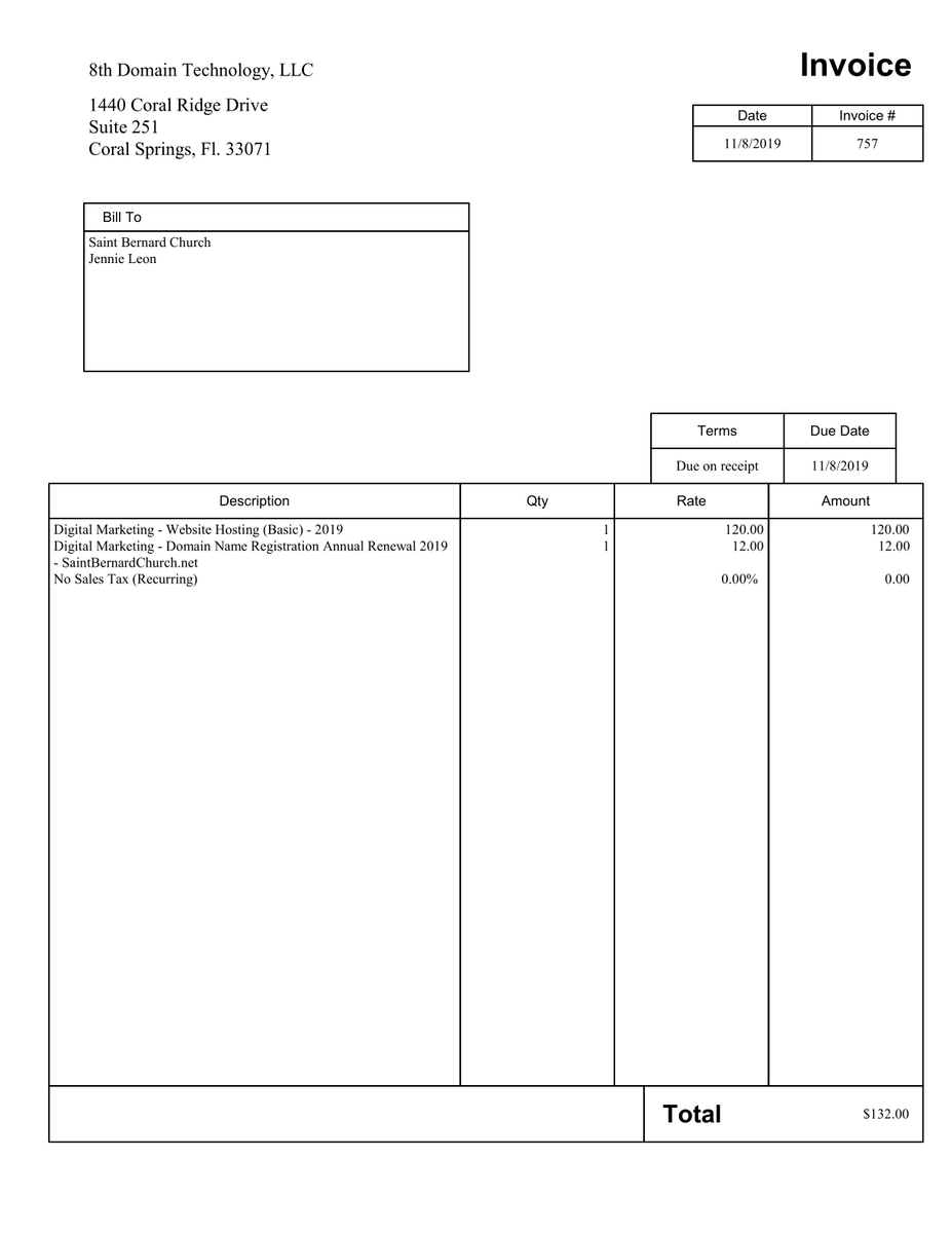 I know Diocesan has purchased the new domain of stbernardsunrise.org for you, but I was not sure if you wanted to have the old domain saintbernardchurch.net redirect to the new website or not. Also, since you canceled the service with 8th Domain Technology,