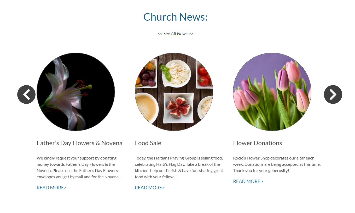 ✔ Church News slider should display more than just 3 when you click the arrow.