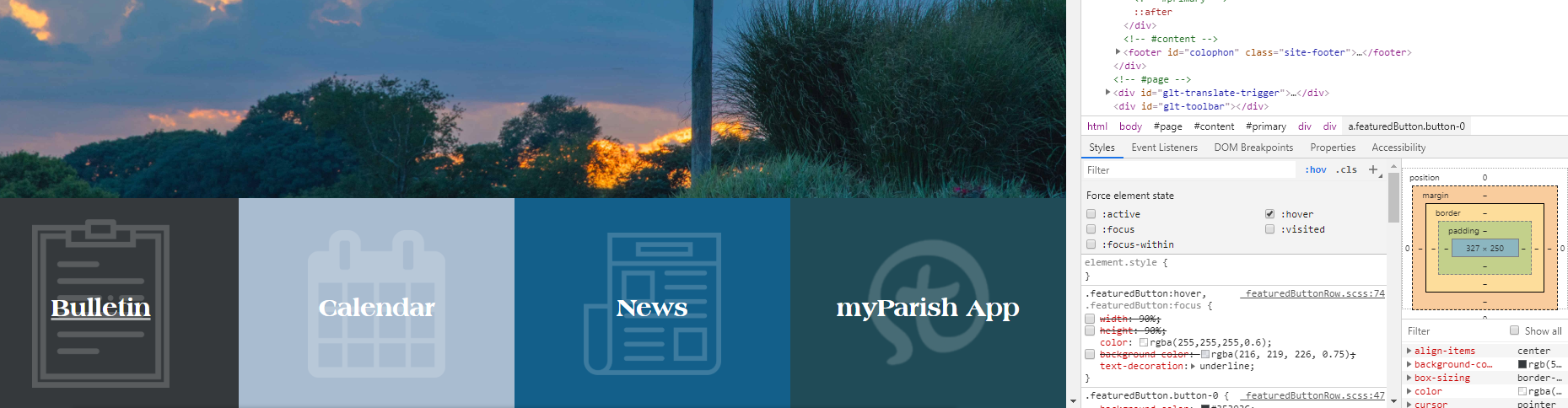 - Size of box/possibly text is off, Box Size (featuredButtonContainer) to 250px
