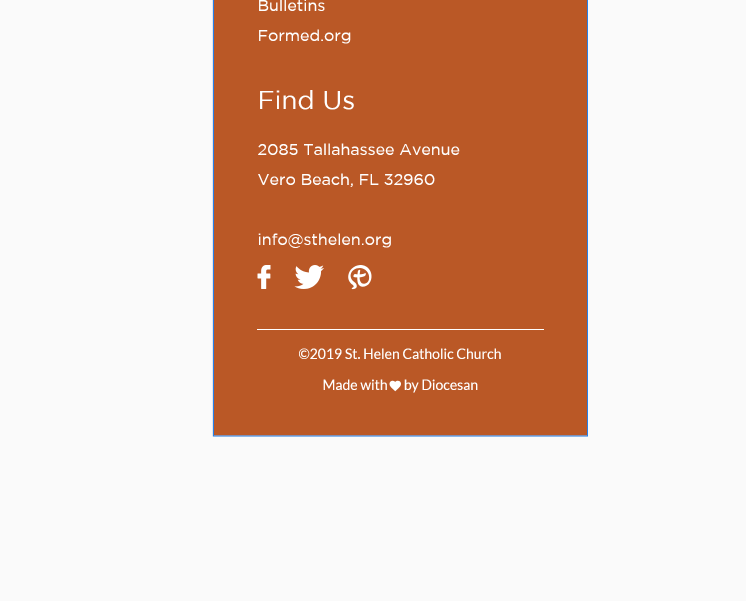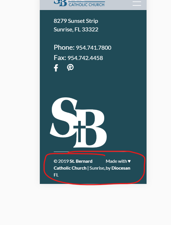 ✔ Footer - Site info section should stack, Copy right on top and then Diocesan stuff beneath