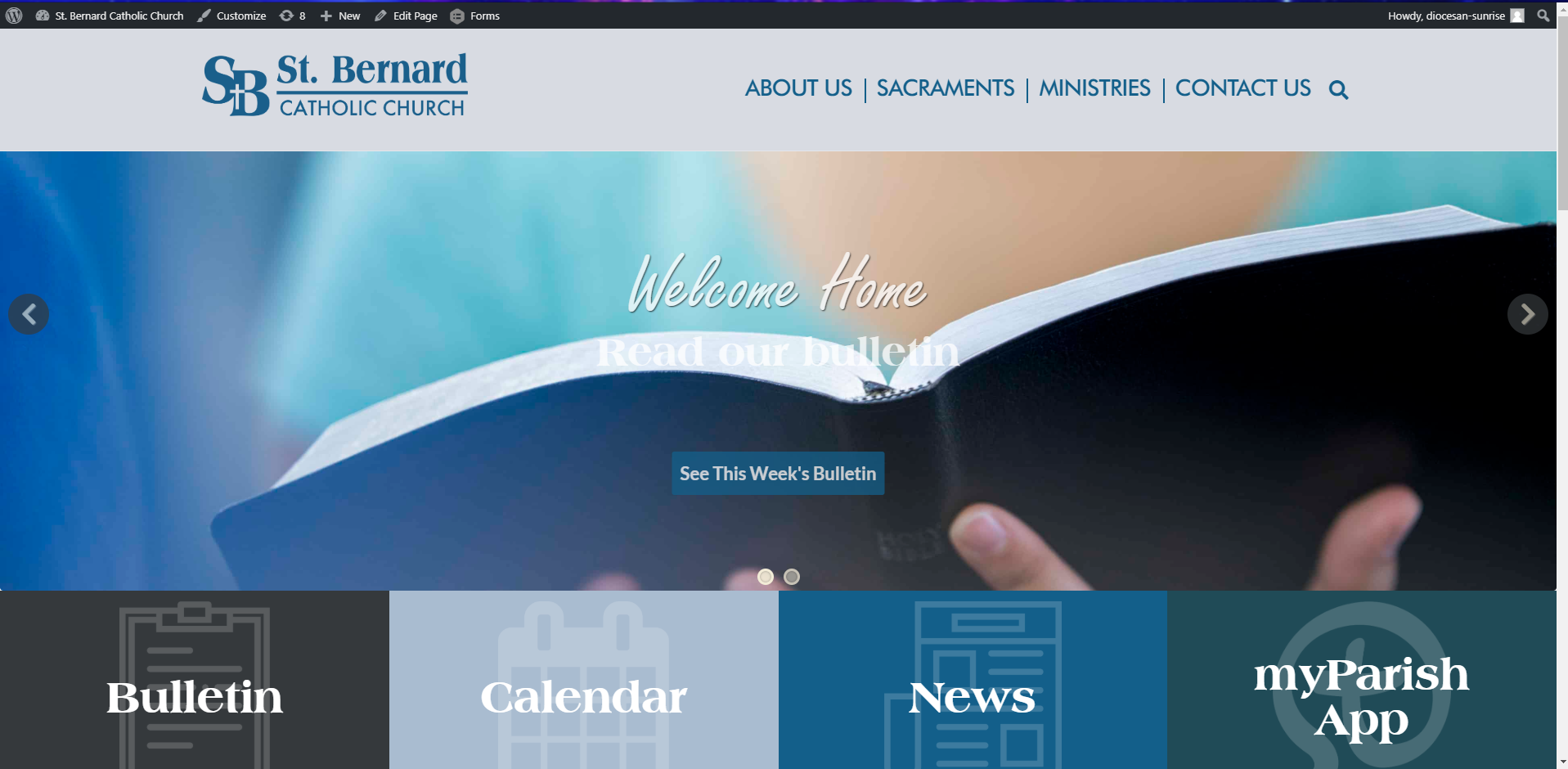 Make the Slider Text a little bit smaller (30pxish) and add a text-shadow around it, so that it is more readable. It can barely be read on the bible slide. Maybe change the opacity of it too, so that it is not as transparent.