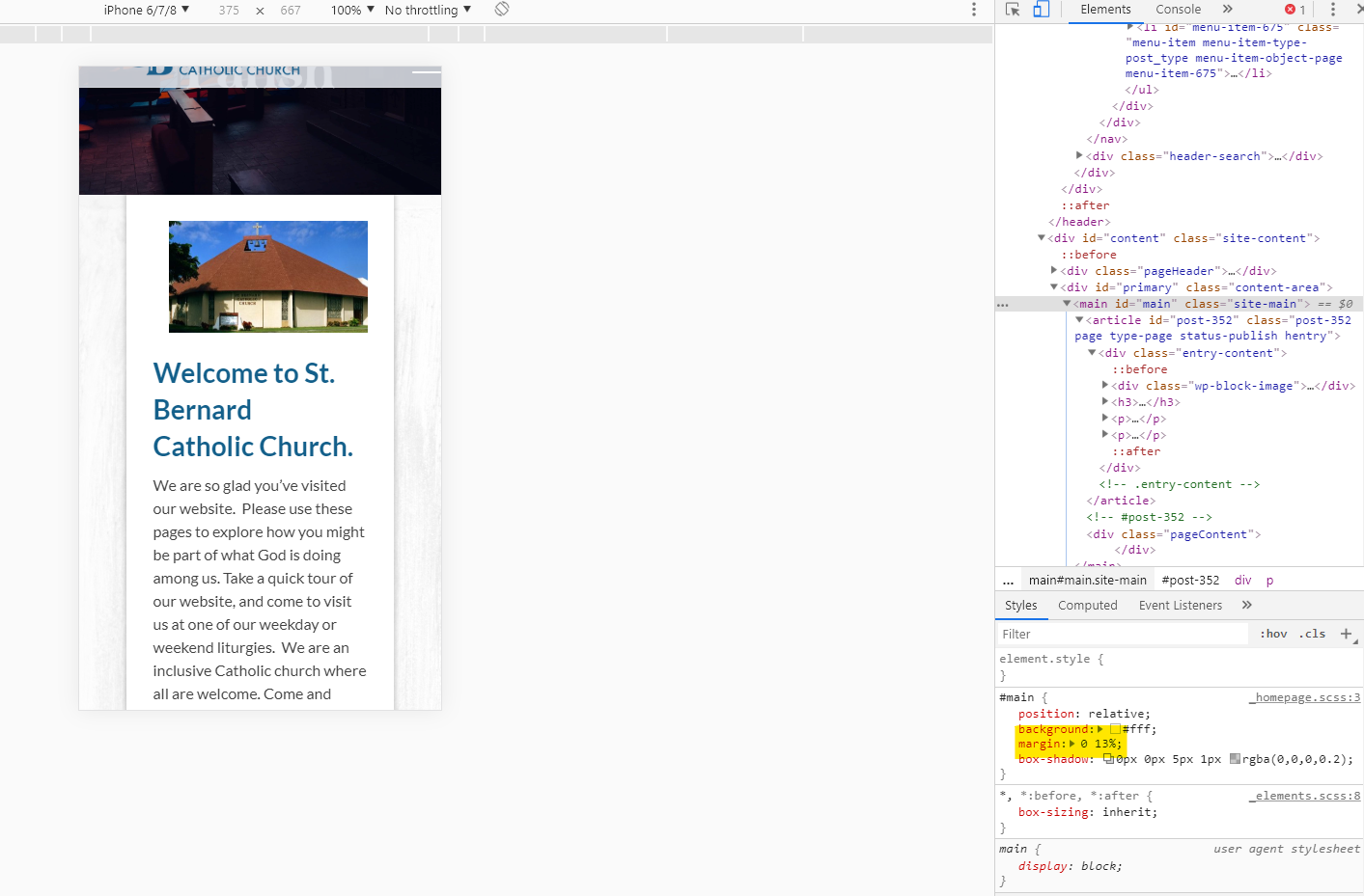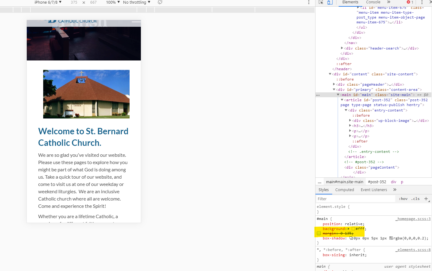 ✔ Inner Pages - Remove the margins off the Main tag so that the content is not shrunk