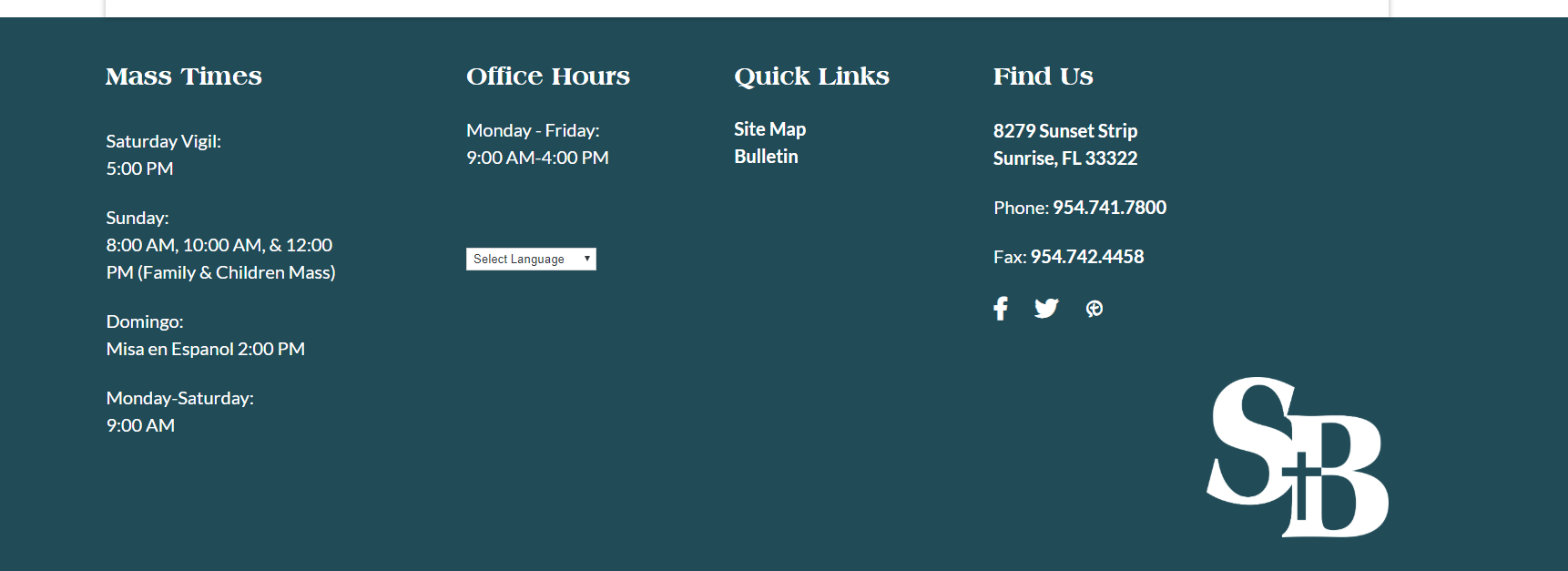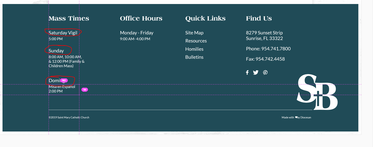 ✔ Mass Times Section - Mass Days NOT times should be 24px