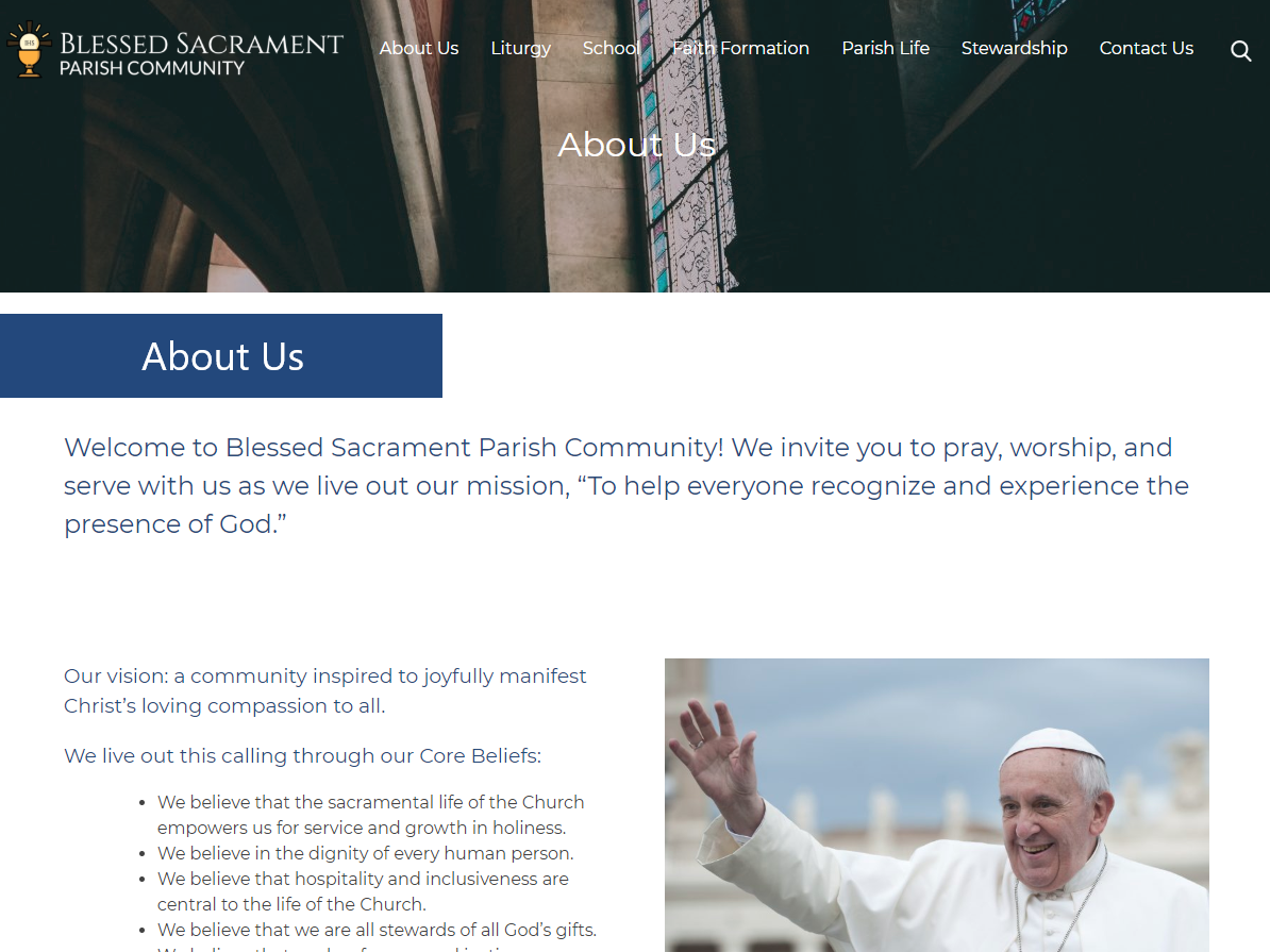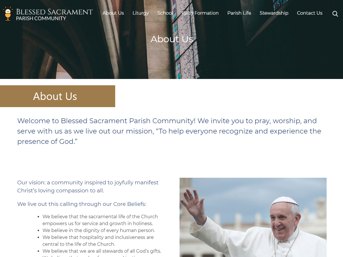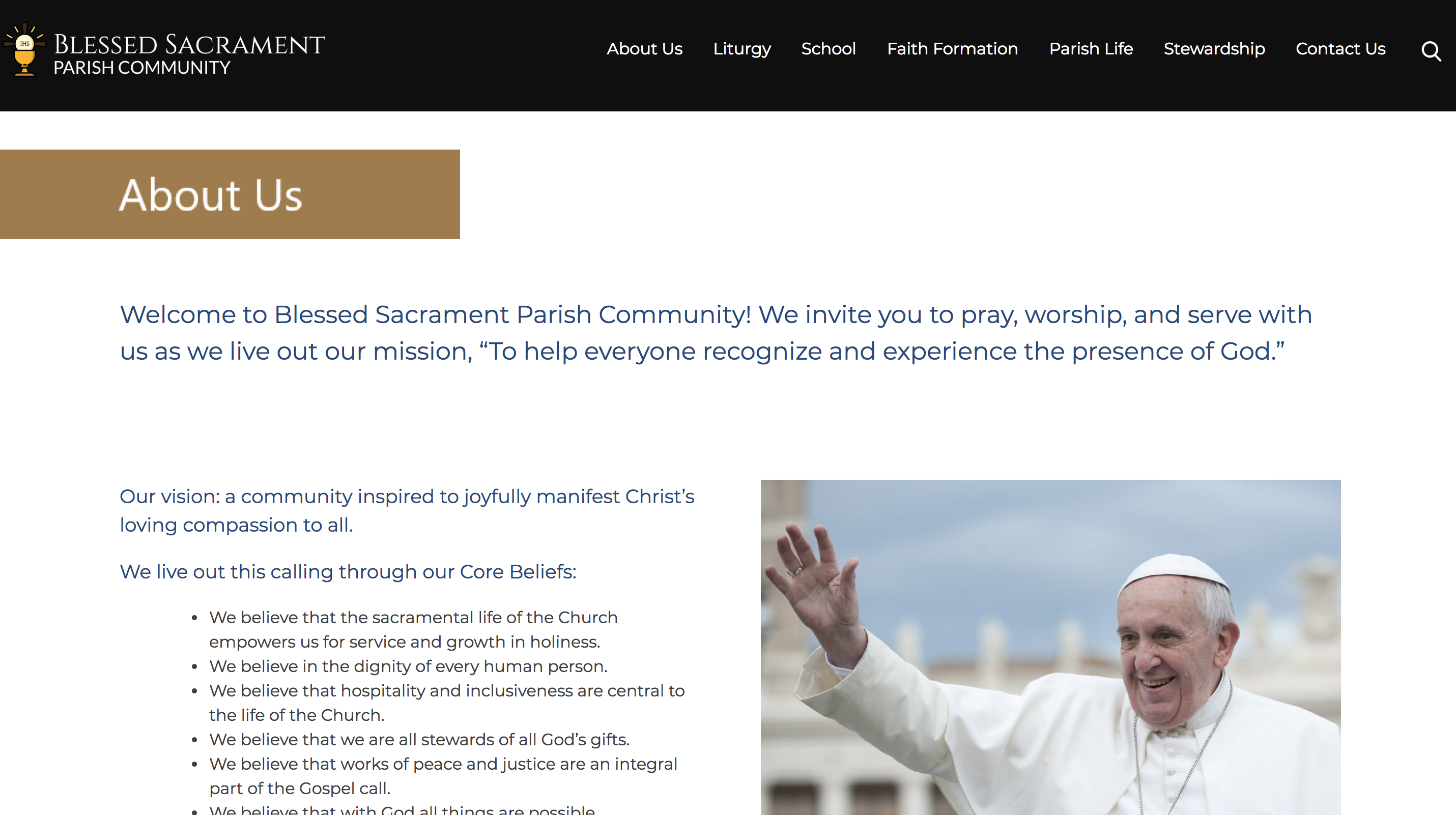 If anything, I'm glad Blessed Sacrament has someone that cares about appearances to work on their websites. A lot of times, we work with people who just try to cram as much information as they can, onto the website. So it ends up bloated with a lot of information that parishioners ignore because there's no image to capture their attention.