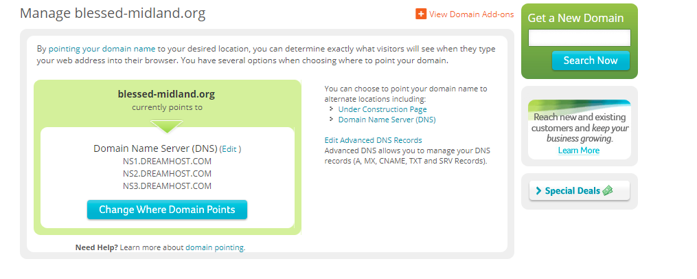 For the domain, I know we use Network Solutions and I have login information for that. When I log in I see a page that looks like this: