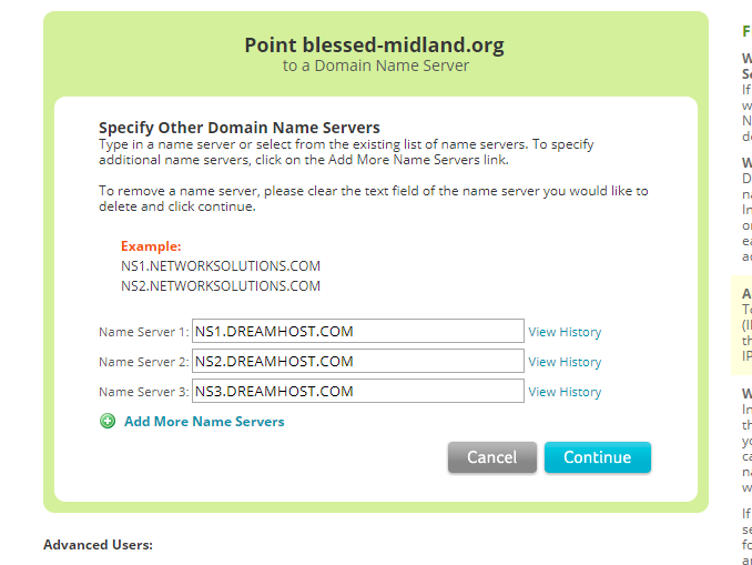 IF IT DOES NOT ALLOW YOU TO CHANGE/ADD THESE, you will have to remove the Name Servers 1&2 and put in the example ones (NS1.NETWORKSOLUTIONS.COM & NS2)