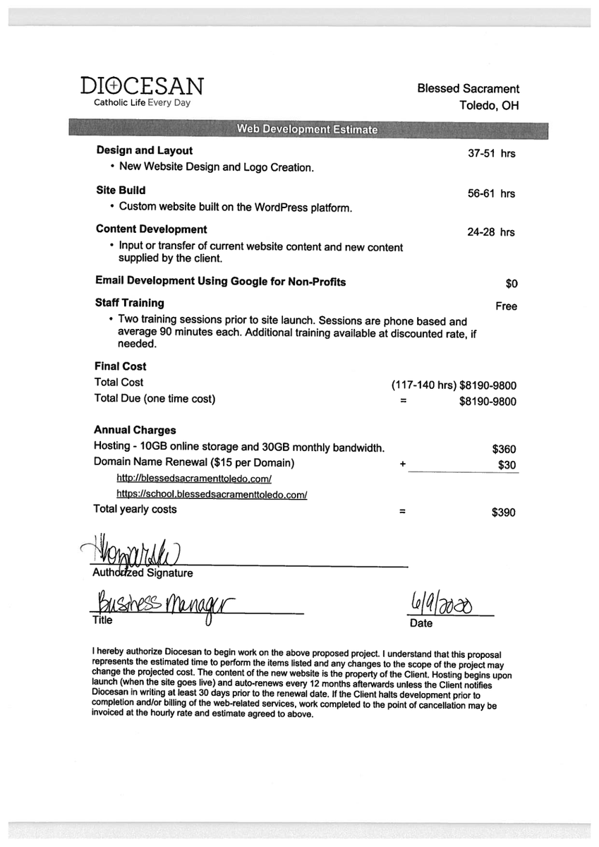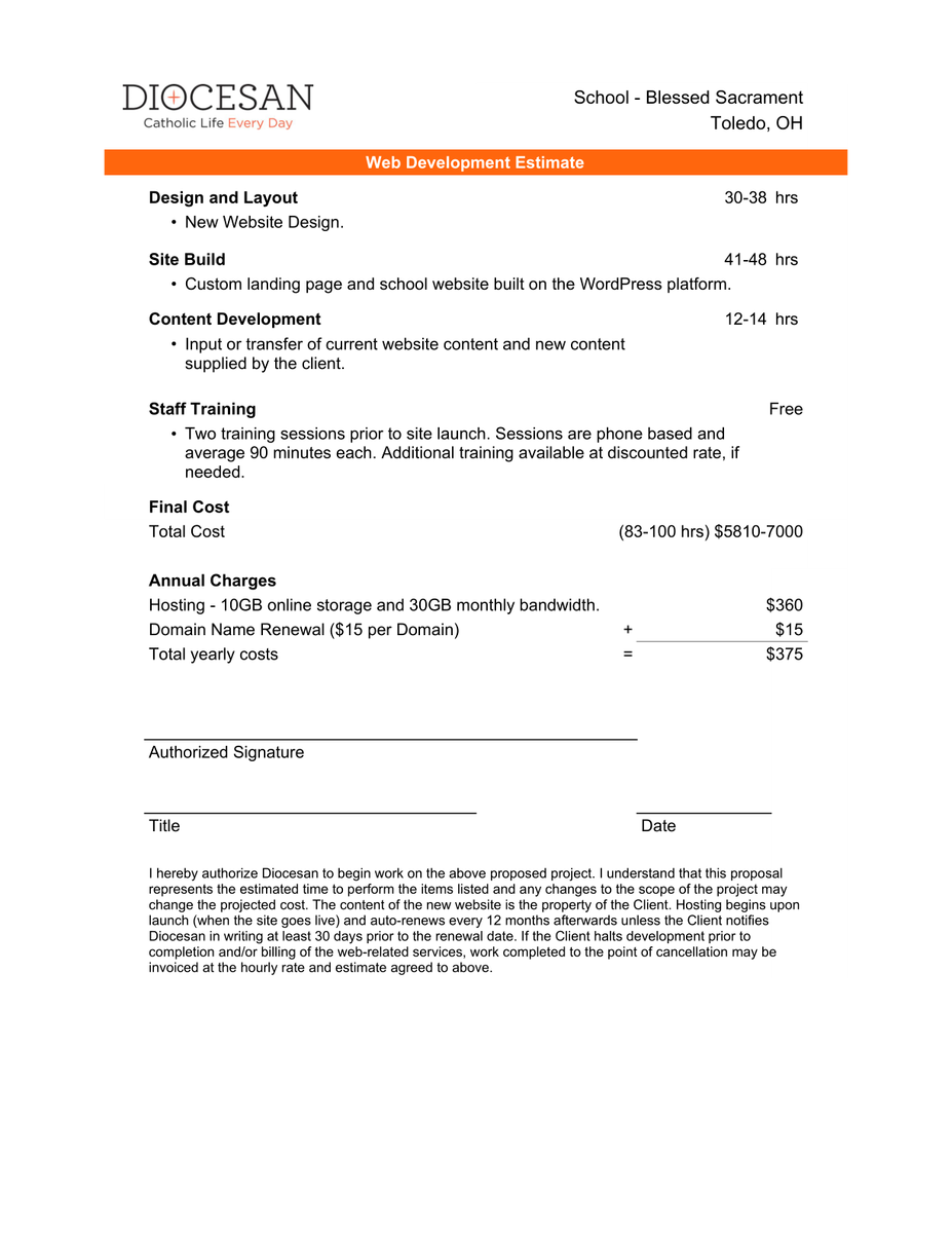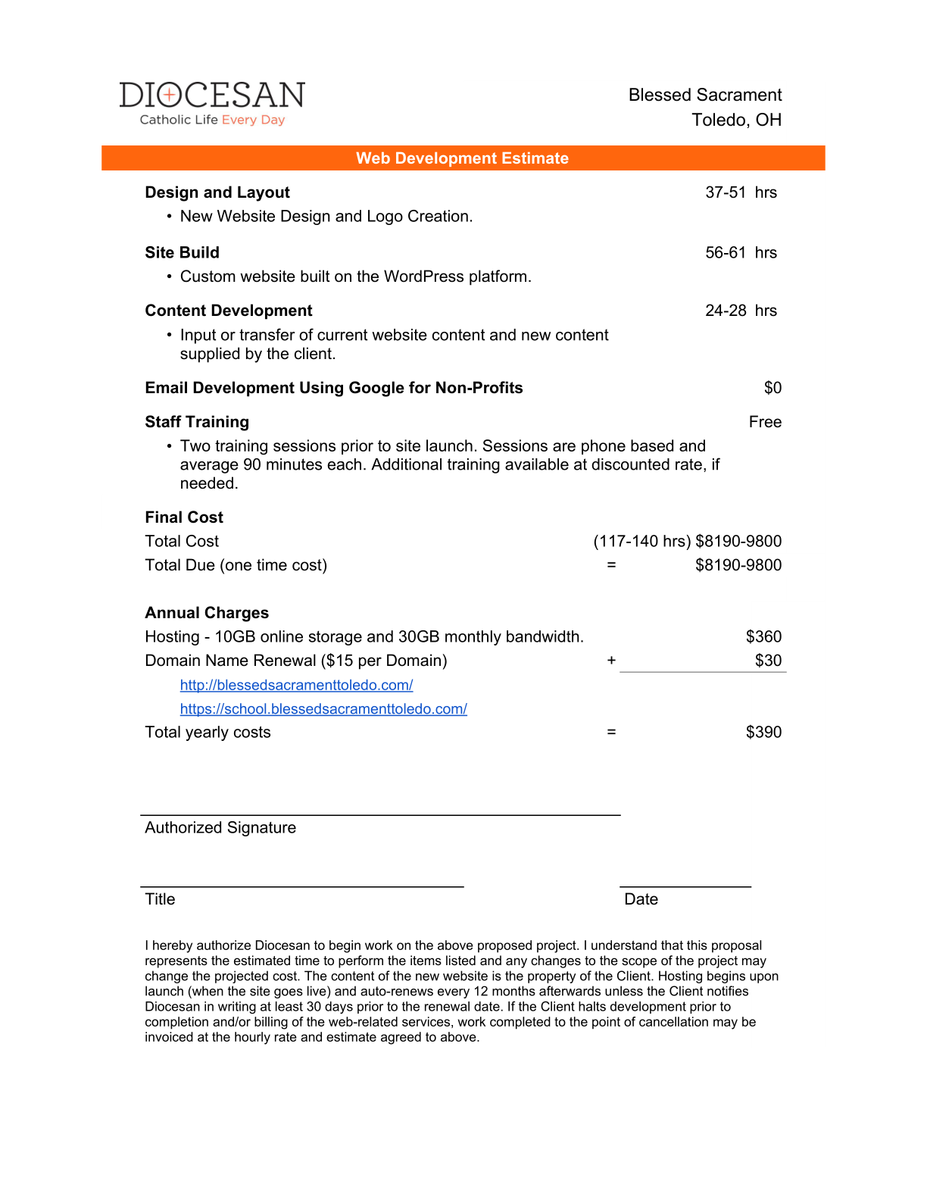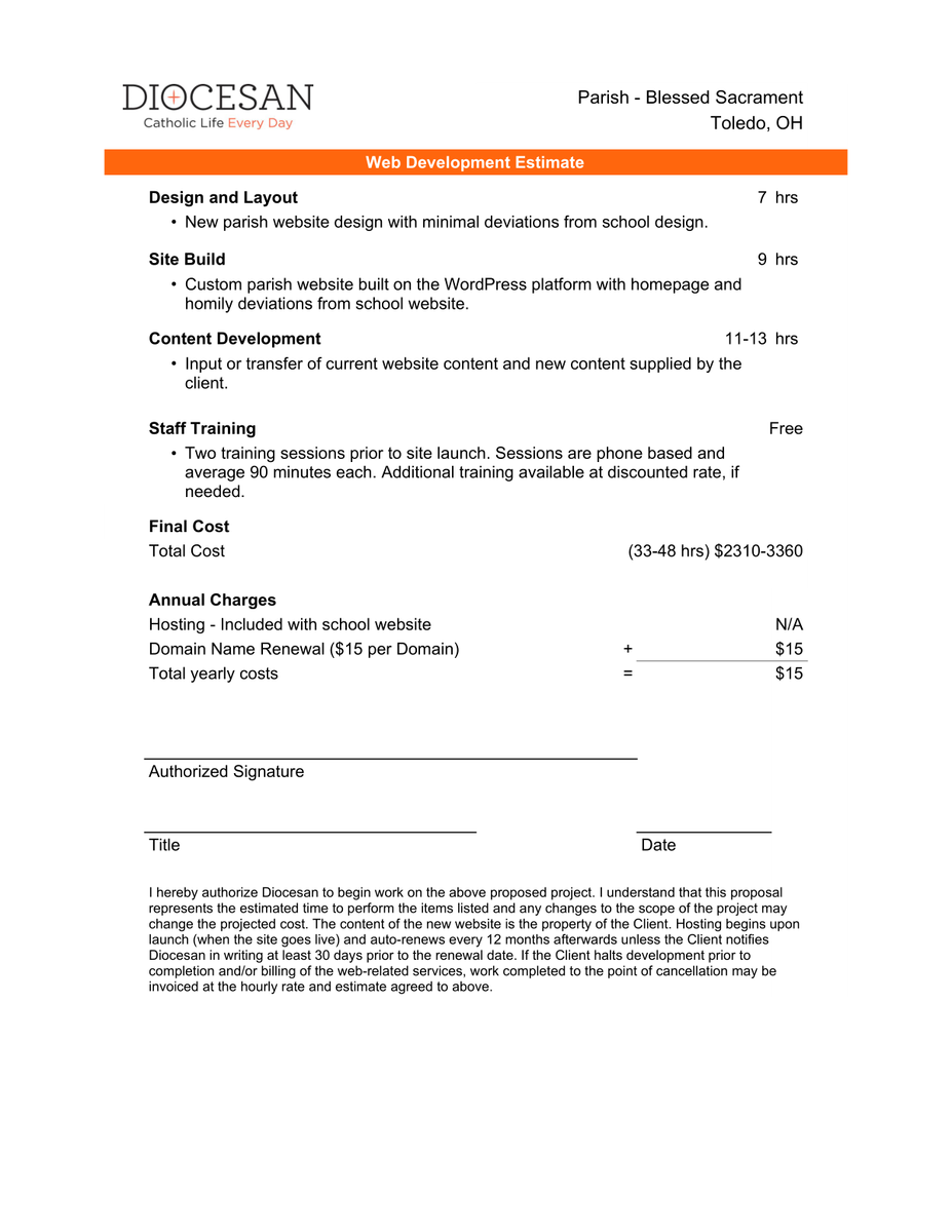 Thank you for your patience as we finalized the proposal for the parish and school websites.